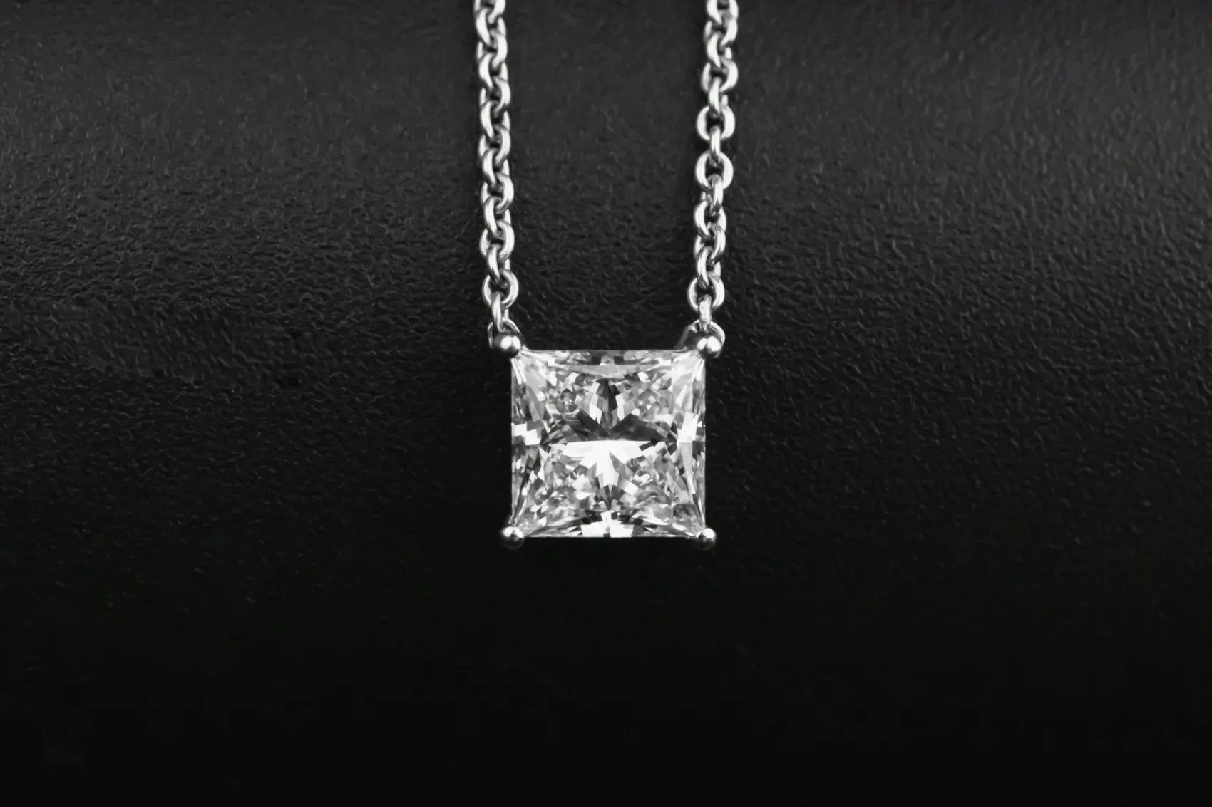 Designed to showcase the diamond’s brilliance and clean geometry, the pendant is suspended from a classic 17-inch chain.