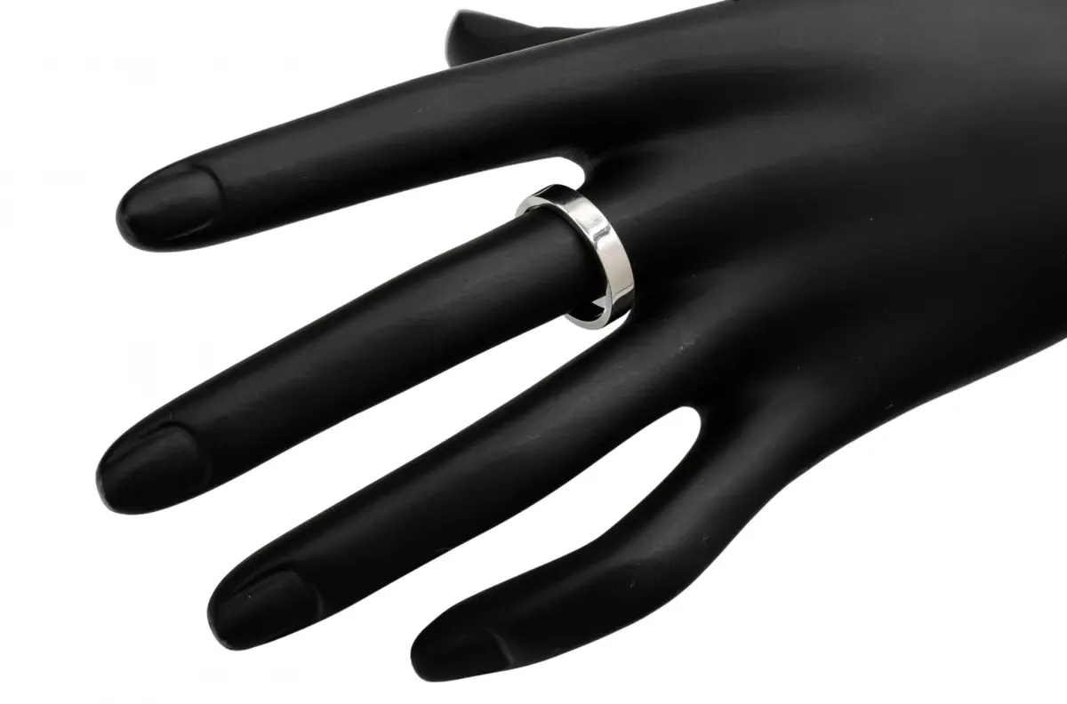 The ring is size N, weighs 4.15mm in width, and offers a sophisticated design for those seeking a modern yet classic wedding band.
