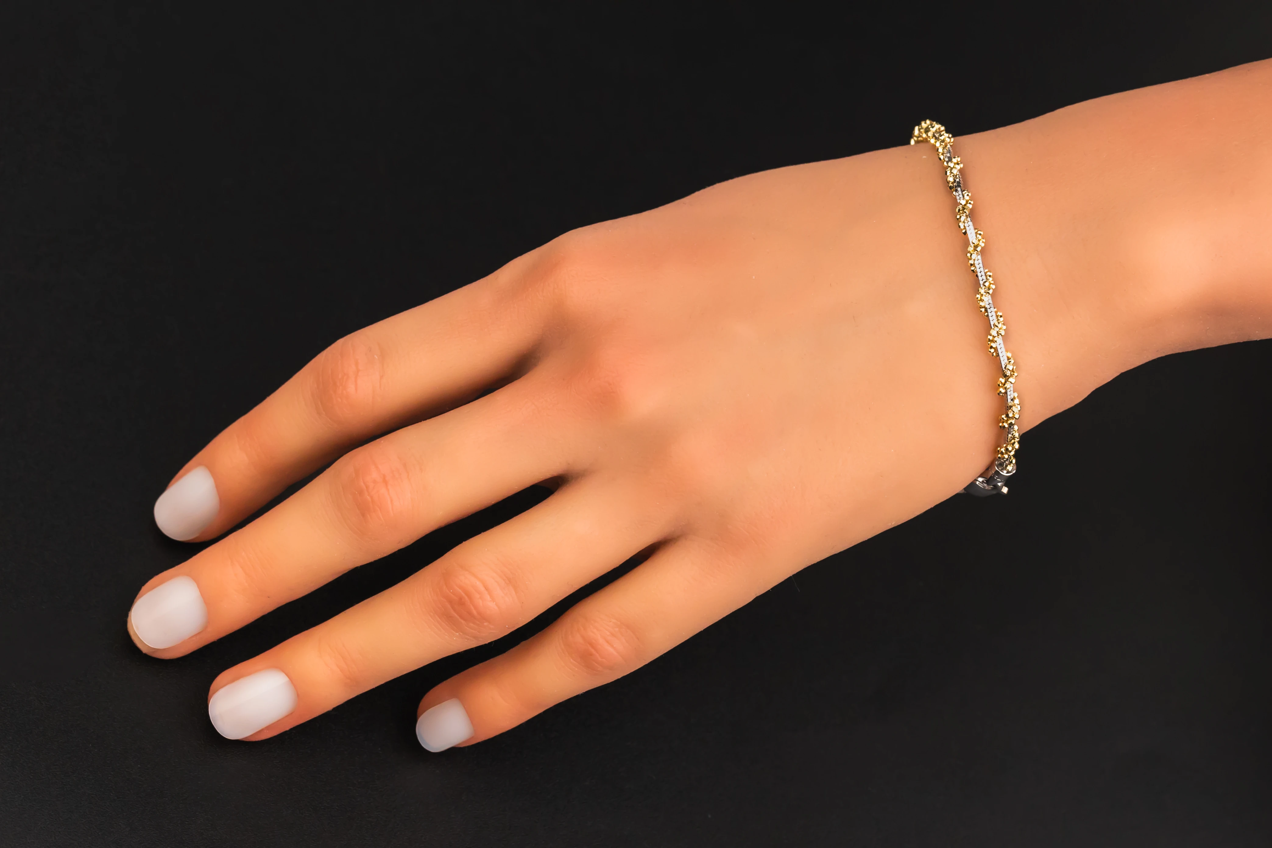 This elegant 18ct two-tone bracelet combines the cool brilliance of white gold with the warm richness of yellow gold, creating a refined piece suitable for any occasion.