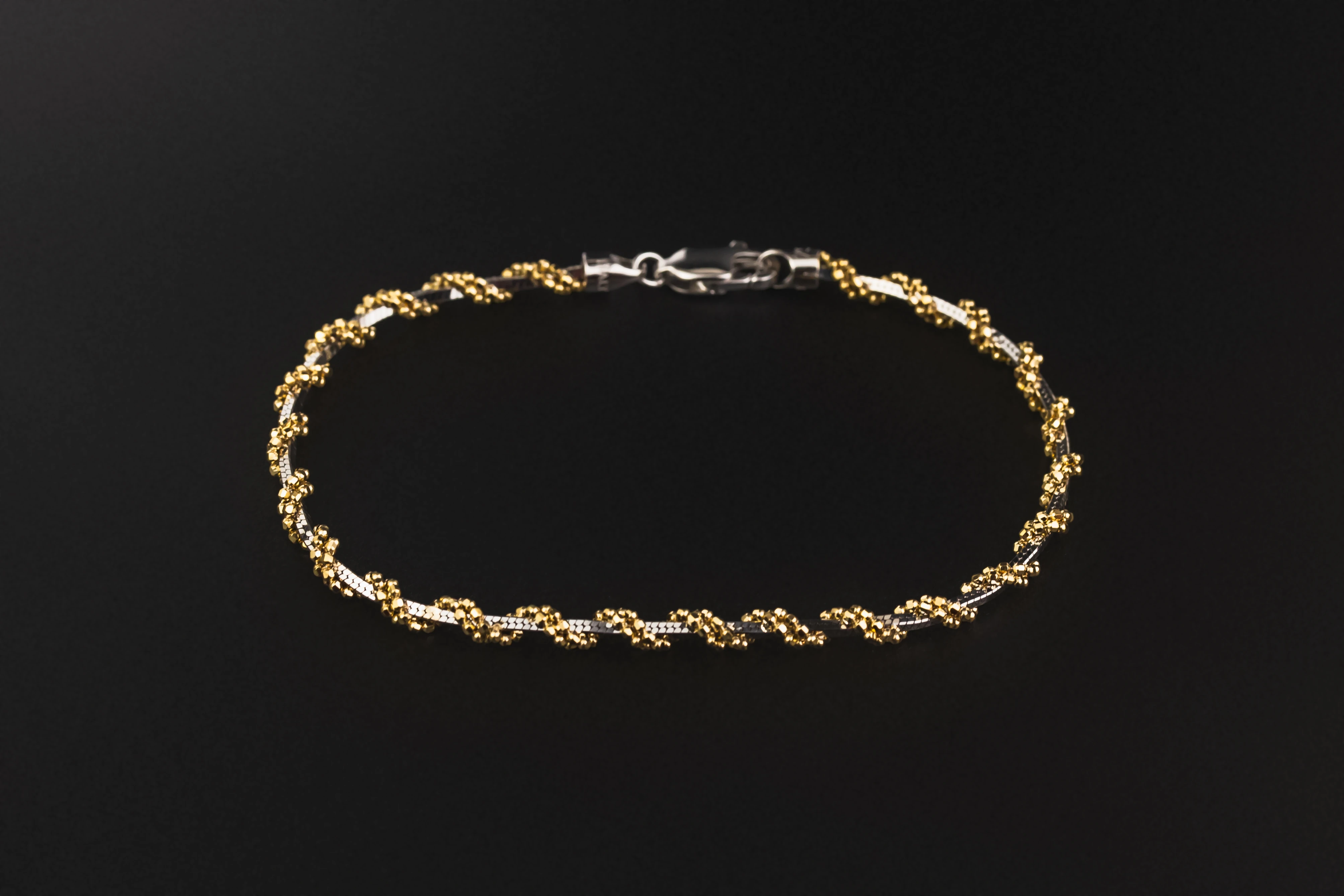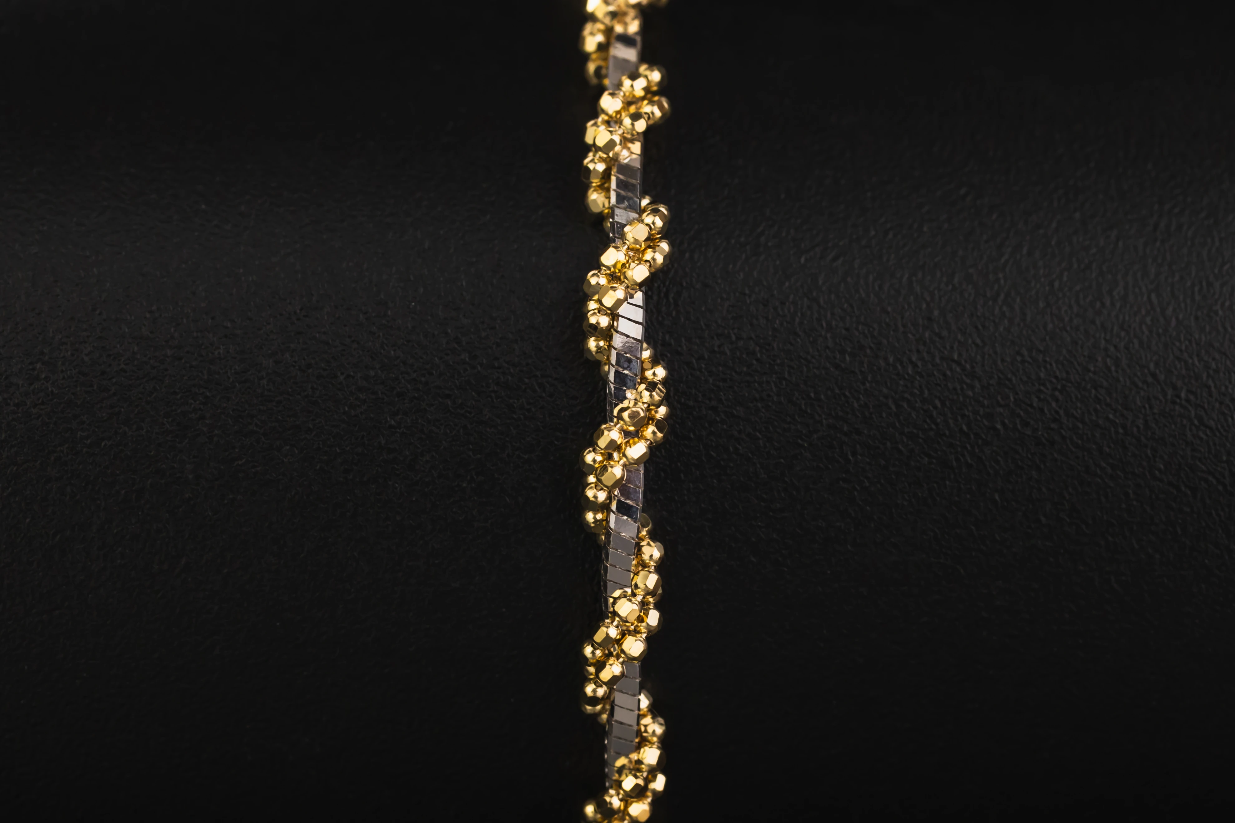 The alternating tones add depth and visual interest, while the polished finish enhances the natural shine of both metals. Its versatile design allows it to be worn alone as a statement of subtle sophistication or paired effortlessly with other jewellery.