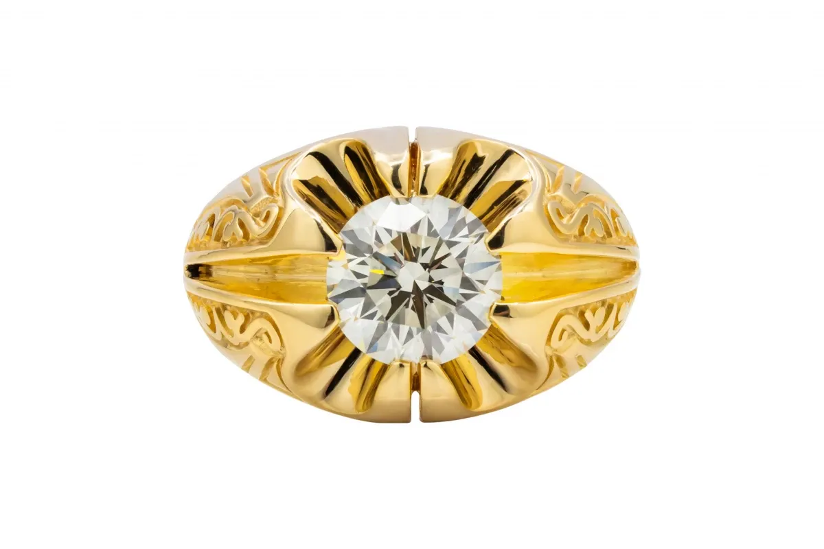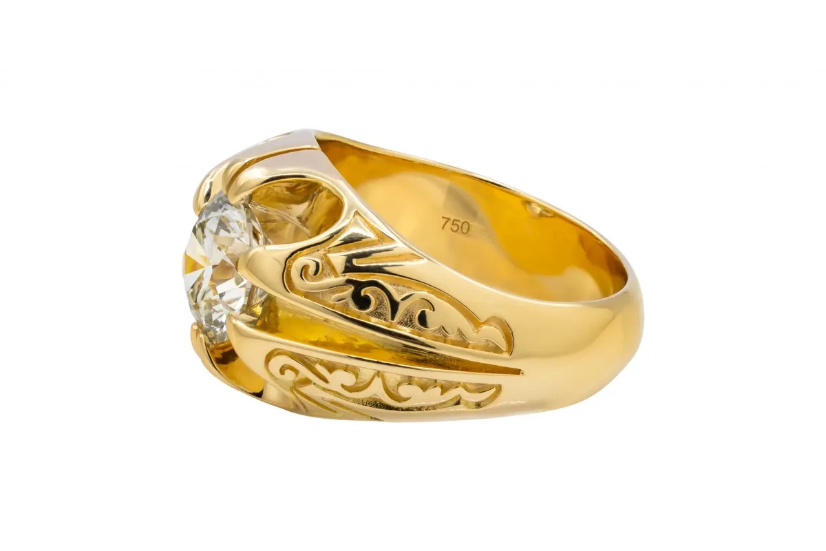 A bold and timeless piece, this 18ct yellow gold signet ring features a striking 2.00ct diamond, GIA certified, with L colour and SI1 clarity.