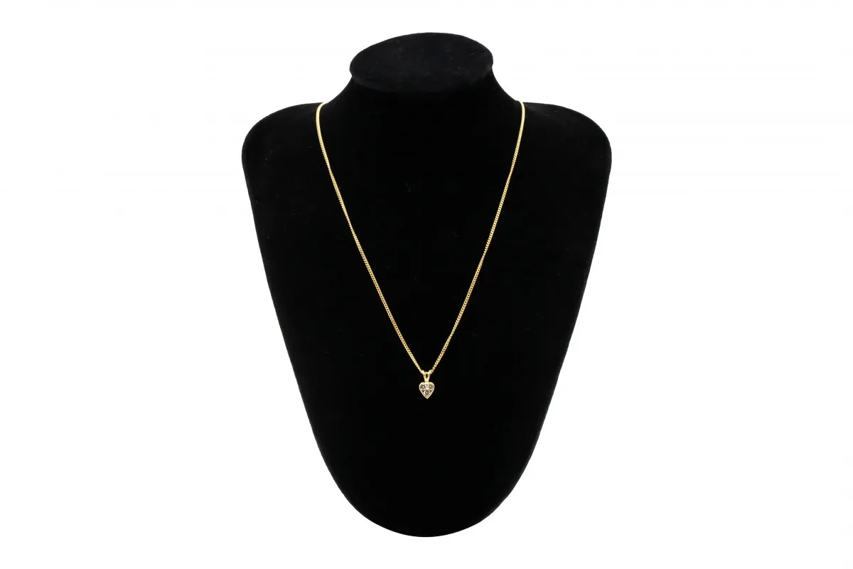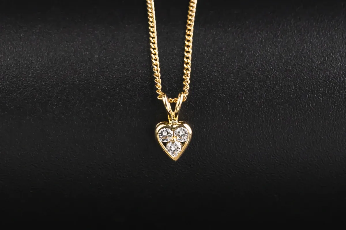 Crafted in 18ct yellow gold, this elegant heart necklace features three sparkling round brilliant cut diamonds totalling 0.10ct (H SI), beautifully set within a timeless heart-shaped design.