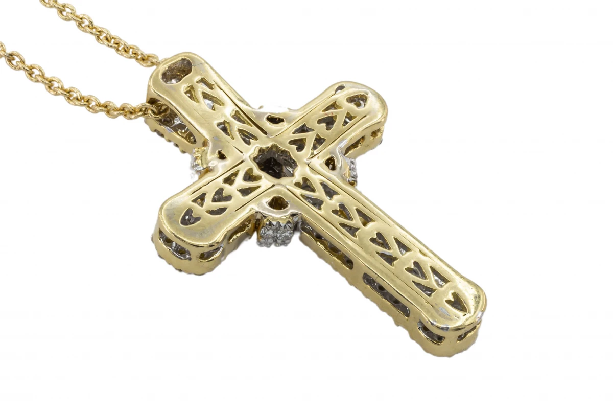 Elegant diamond cross pendant and chain crafted in 18ct yellow gold. This classic