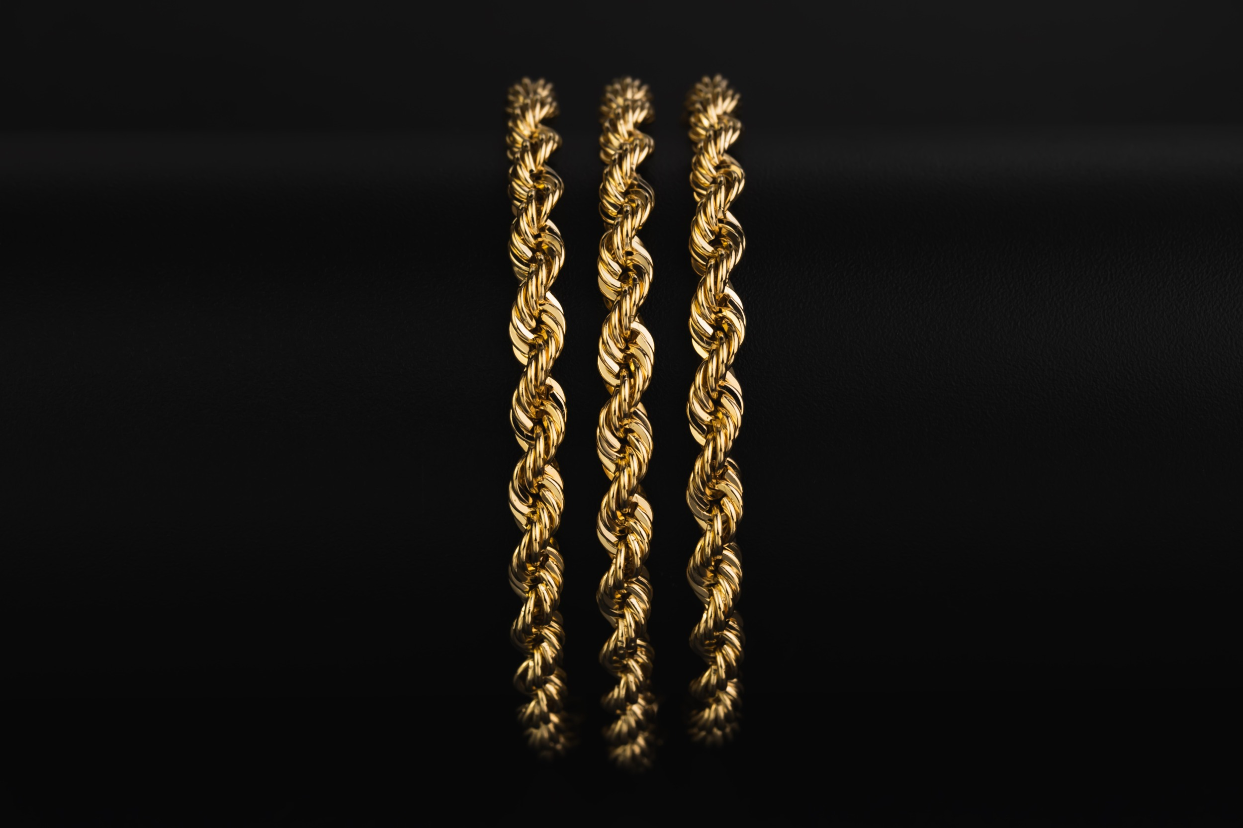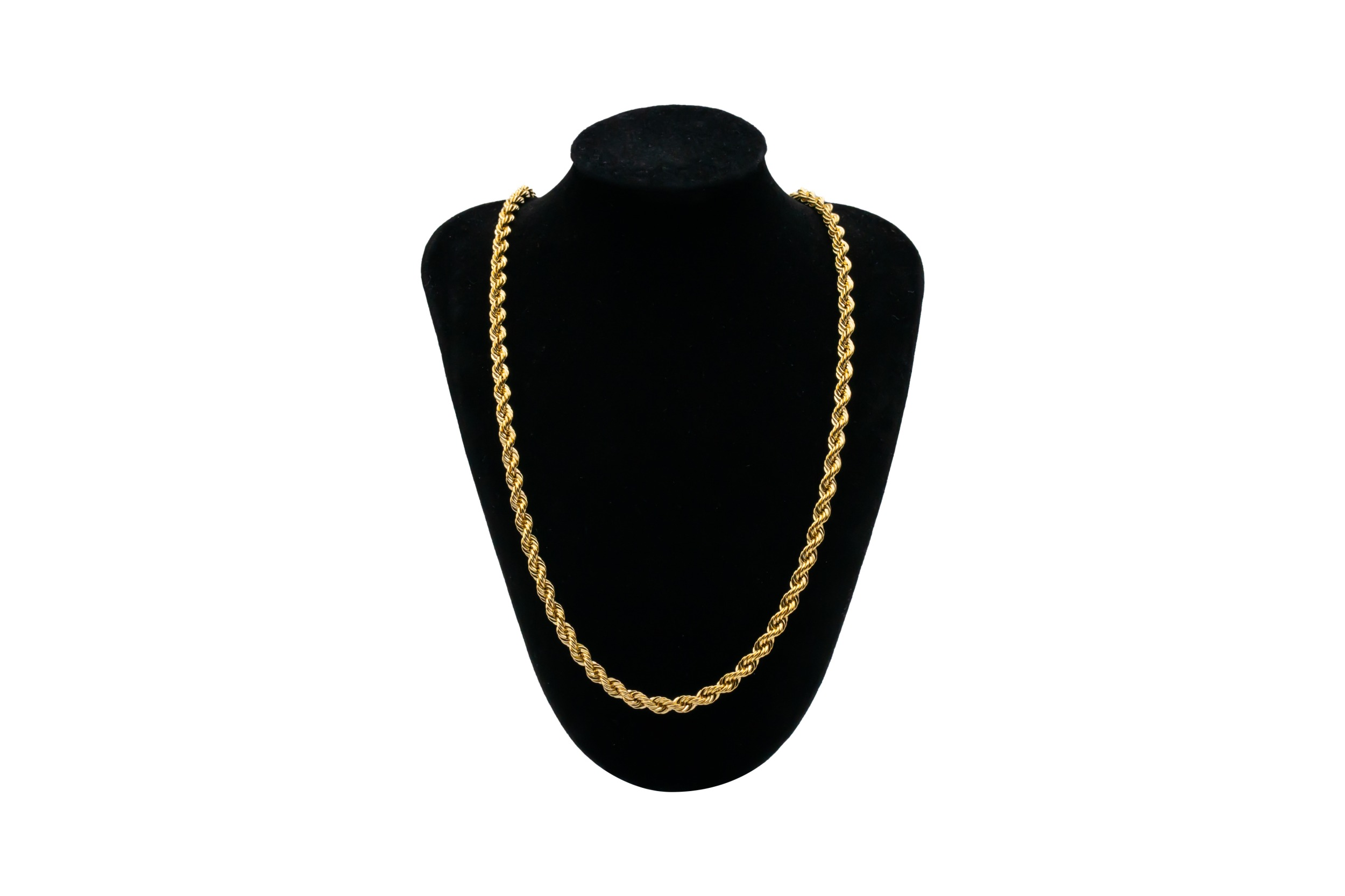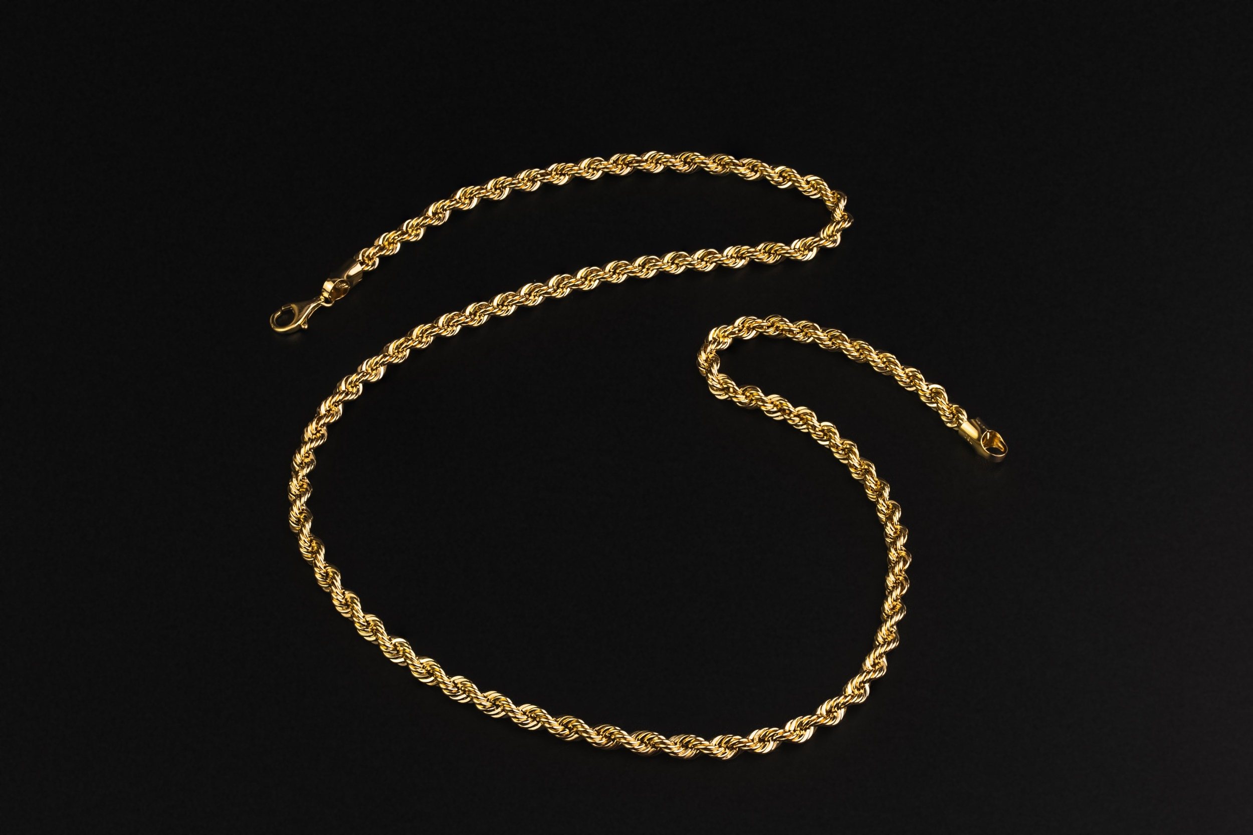 This premium 18ct yellow gold rope chain features a diamond-cut finish that enhances the classic twisted rope design, delivering exceptional brilliance and light reflection.