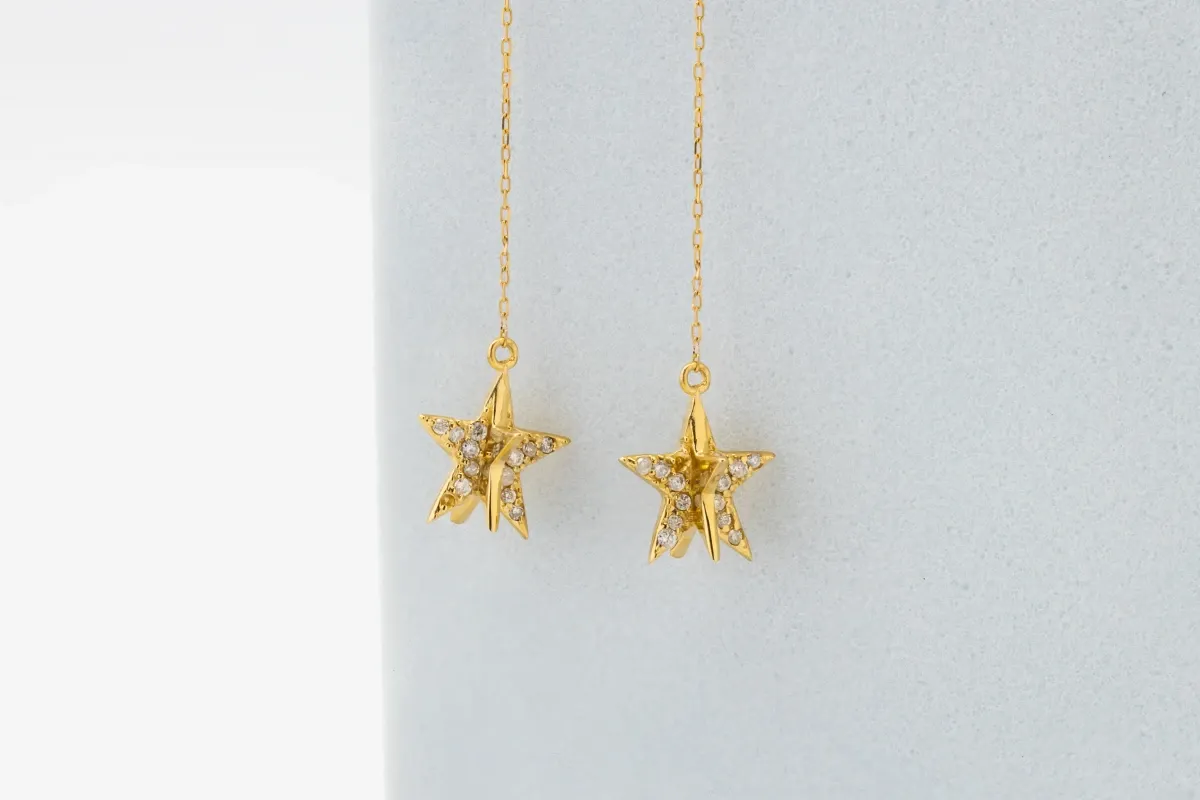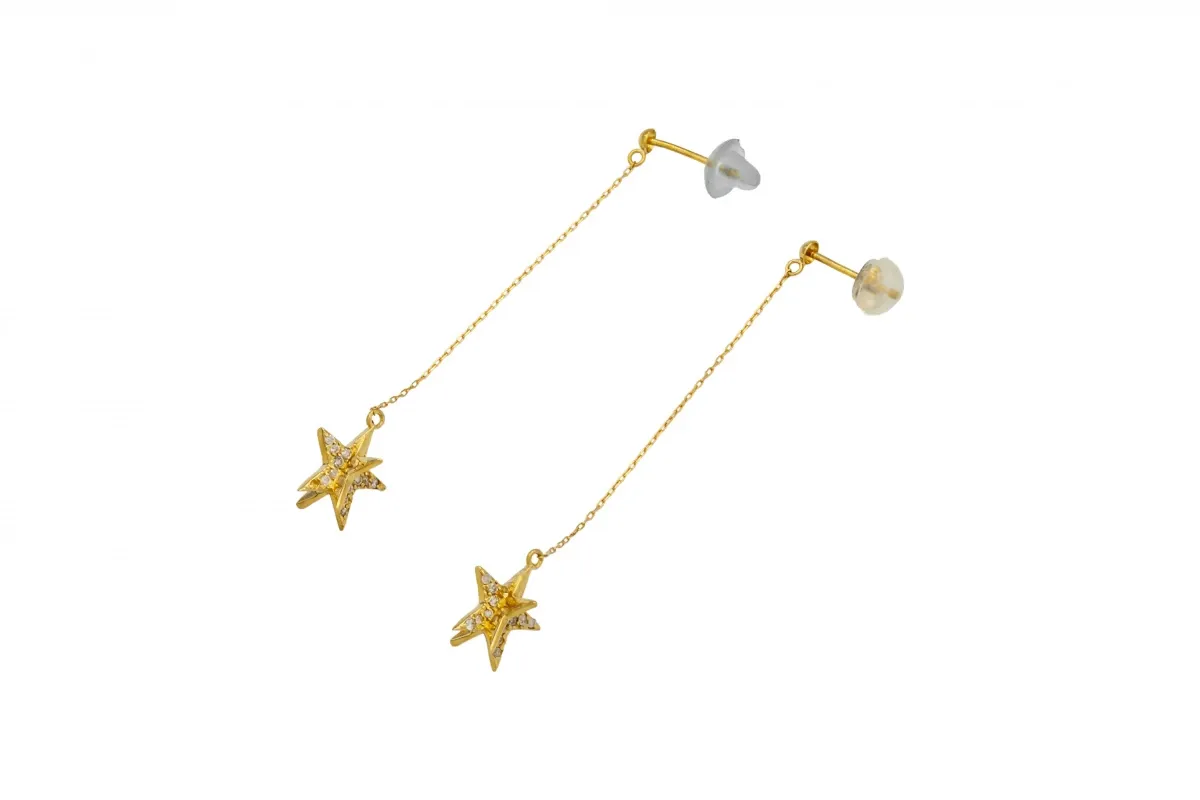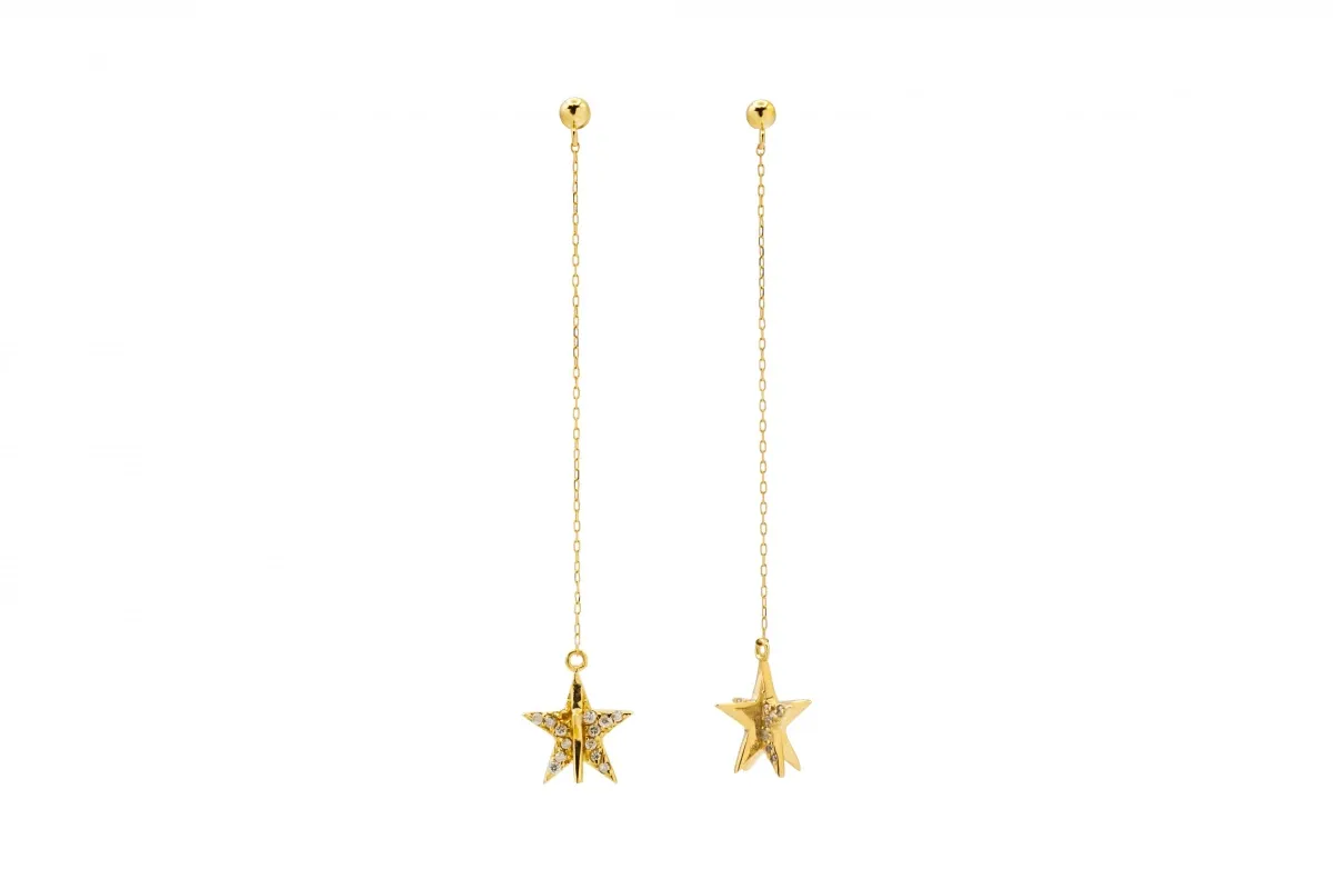 Crafted in radiant 18ct yellow gold, these elegant drop down stud earrings feature round brilliant diamonds totalling 0.09ct.