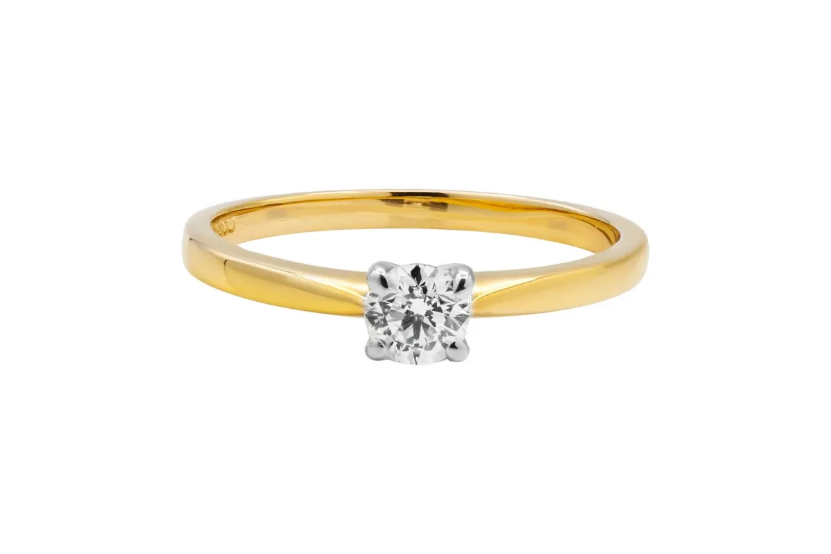 This 18ct Yellow Gold Diamond Engagement Ring showcases a stunning 0.23ct diamond, exuding classic elegance.
