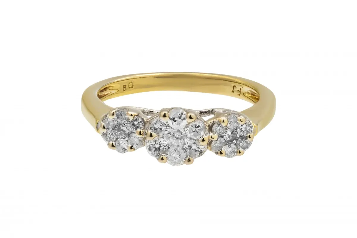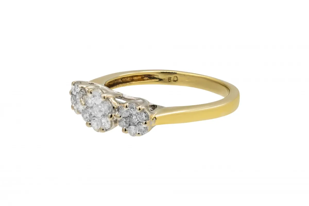 This delicate 18ct yellow gold ring is designed in an elegant flower motif, set with 0.14ct of natural diamonds.