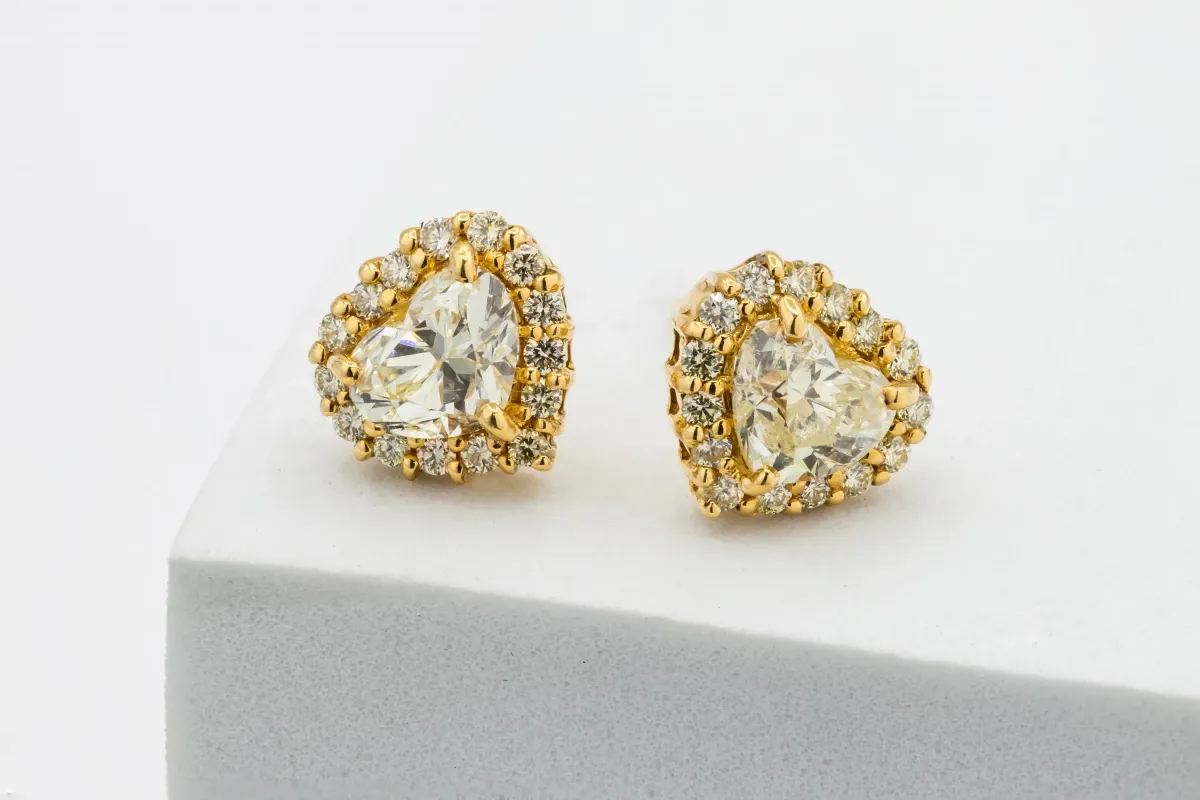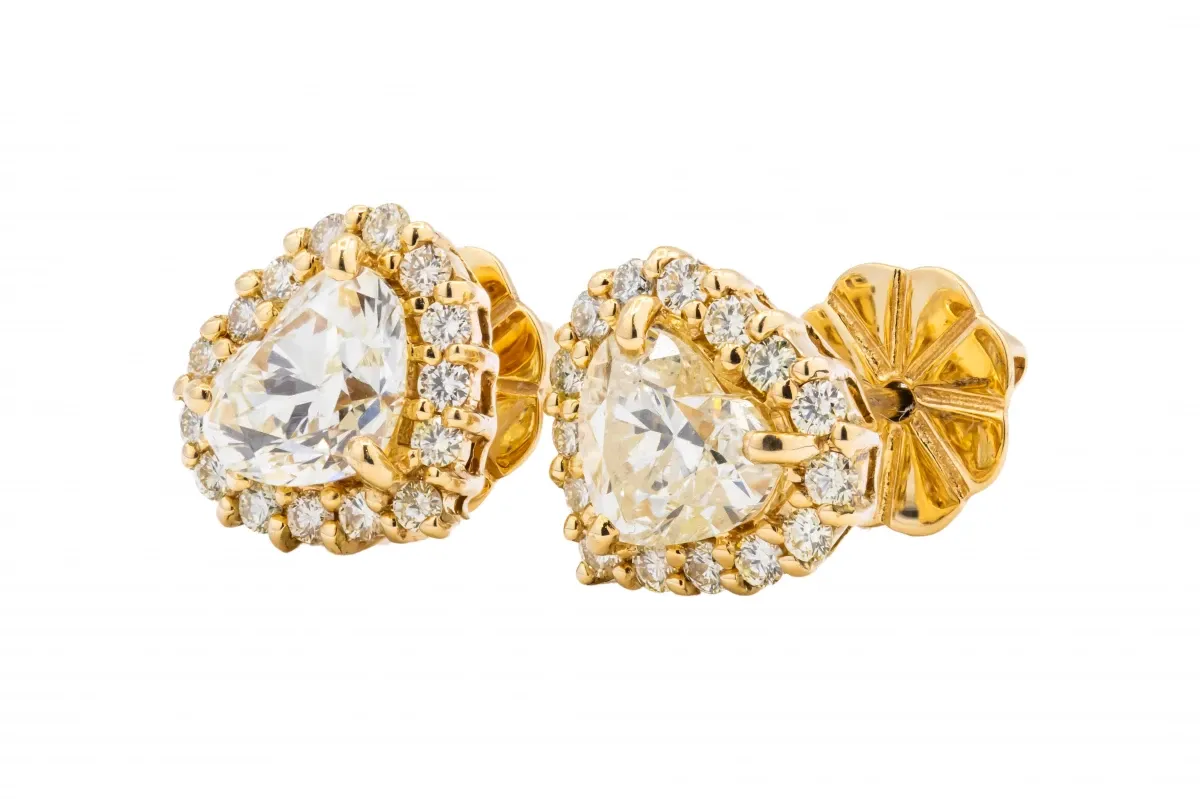 18ct Yellow Gold Diamond Heart Shaped Stud Earrings 2.53ct