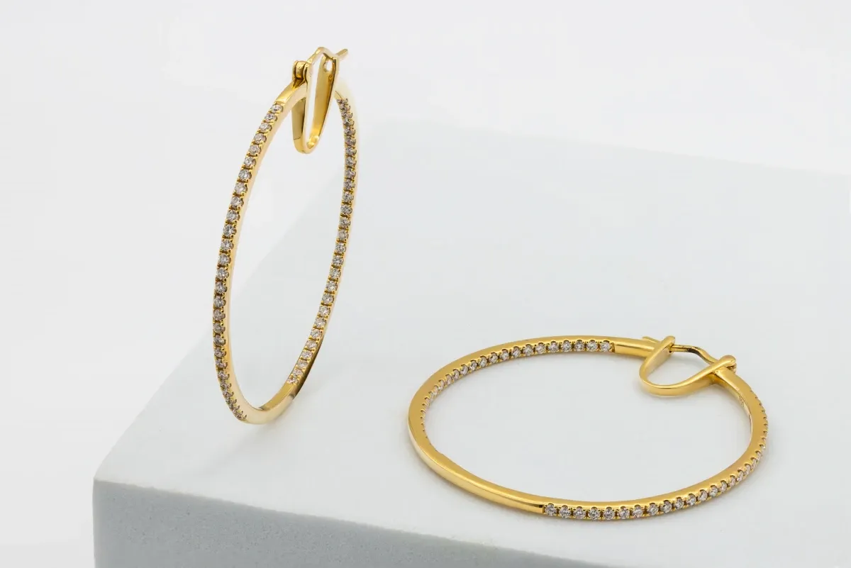 18ct Yellow Gold Diamond Hoop Earrings 1.05ct 11.1g