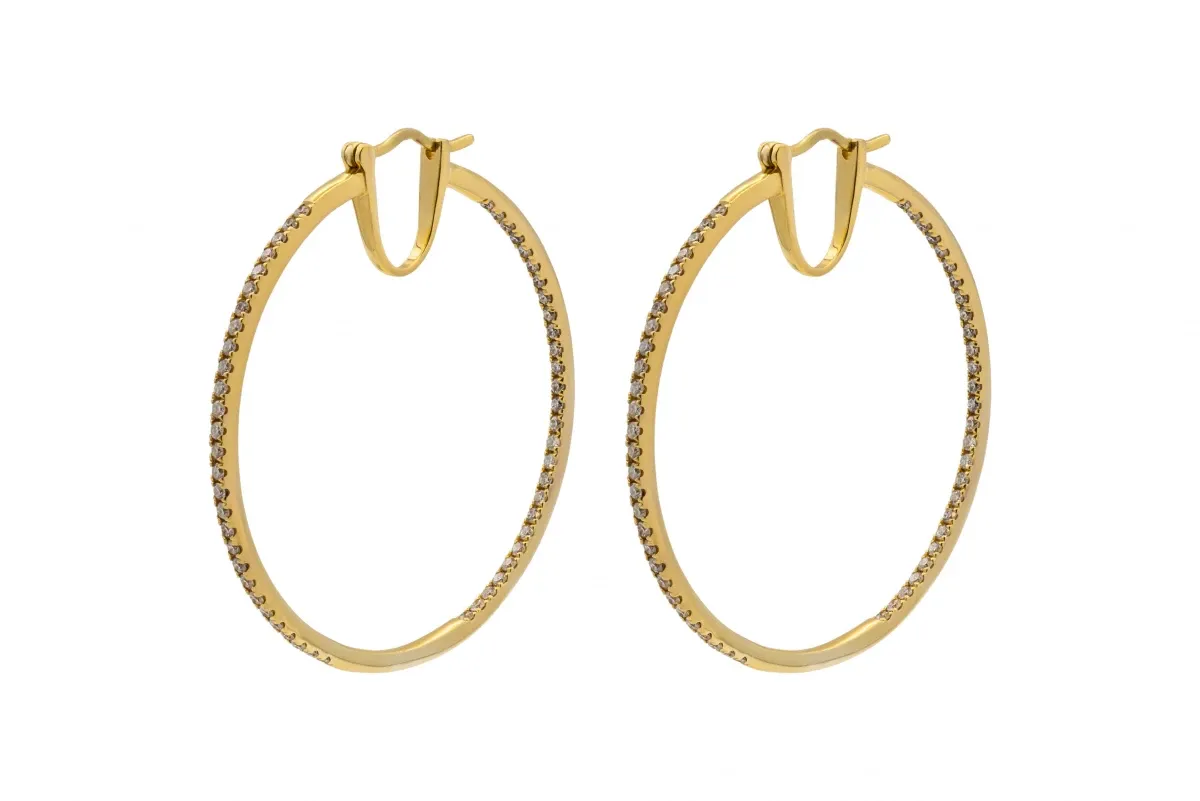 Exquisite 18ct Yellow Gold Diamond Hoop Earrings, exuding sophistication.
