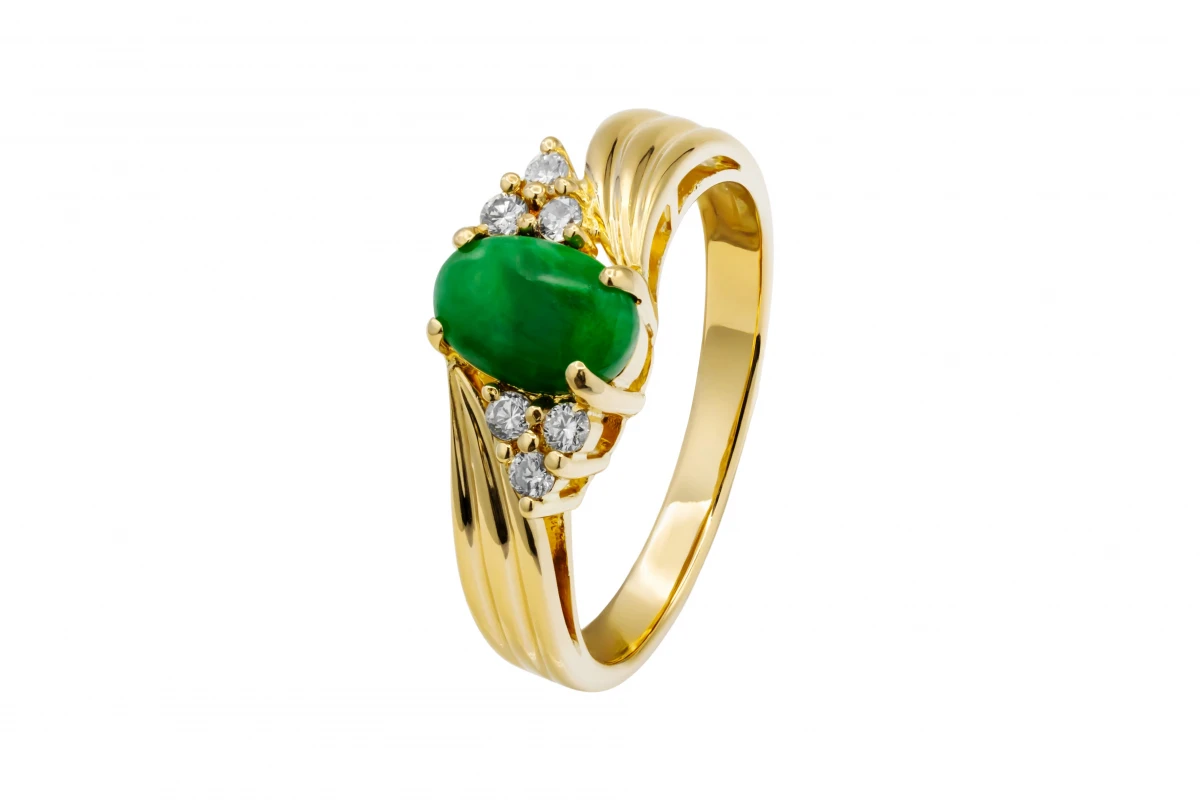 18ct Yellow Gold Cabechon Emerald And Diamond Ring 0.15ct