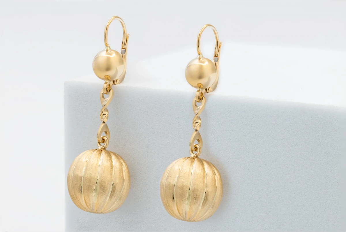 These sophisticated 18ct yellow gold drop-down ball earrings showcase a classic, polished design with 13.6mm spheres, adding a touch of elegance and modern charm.