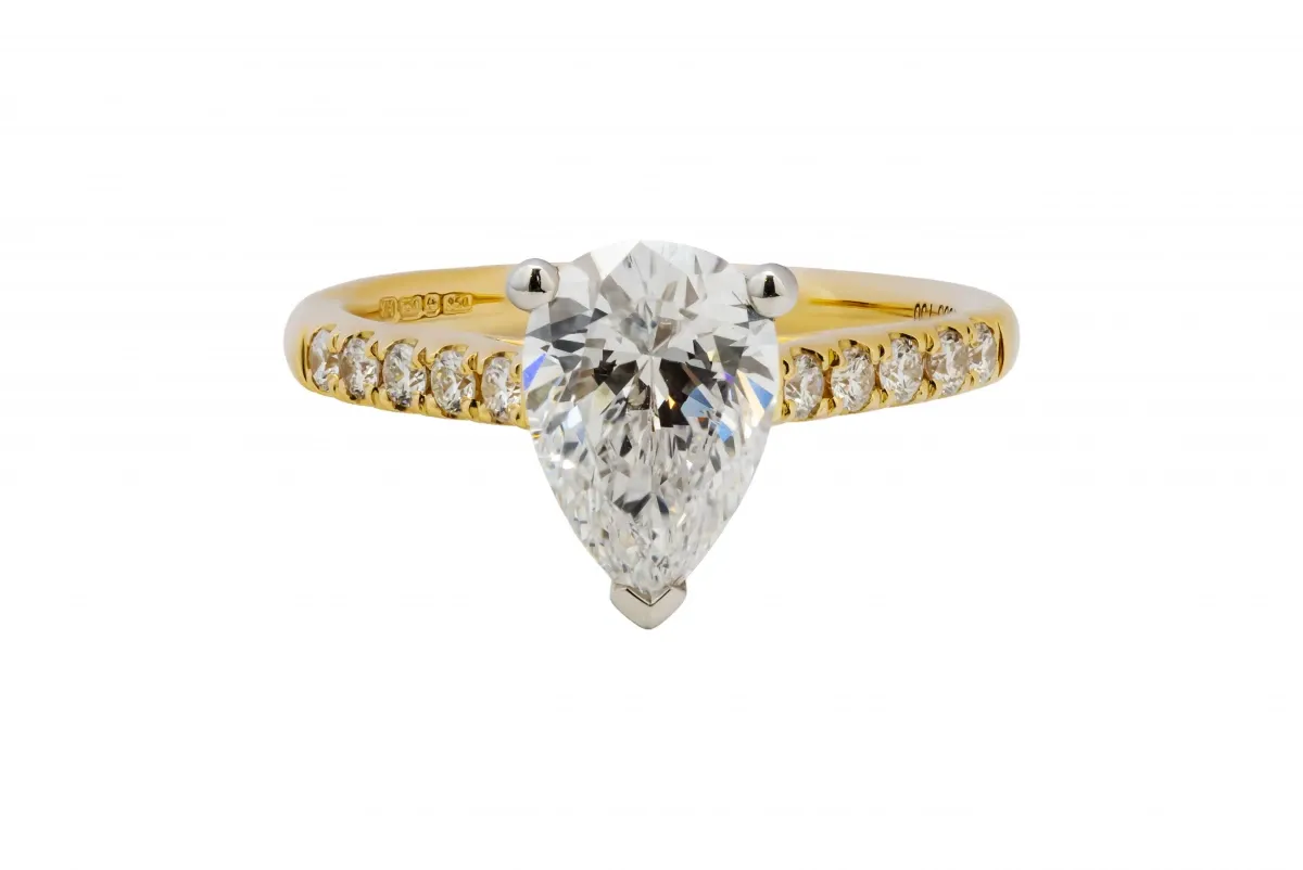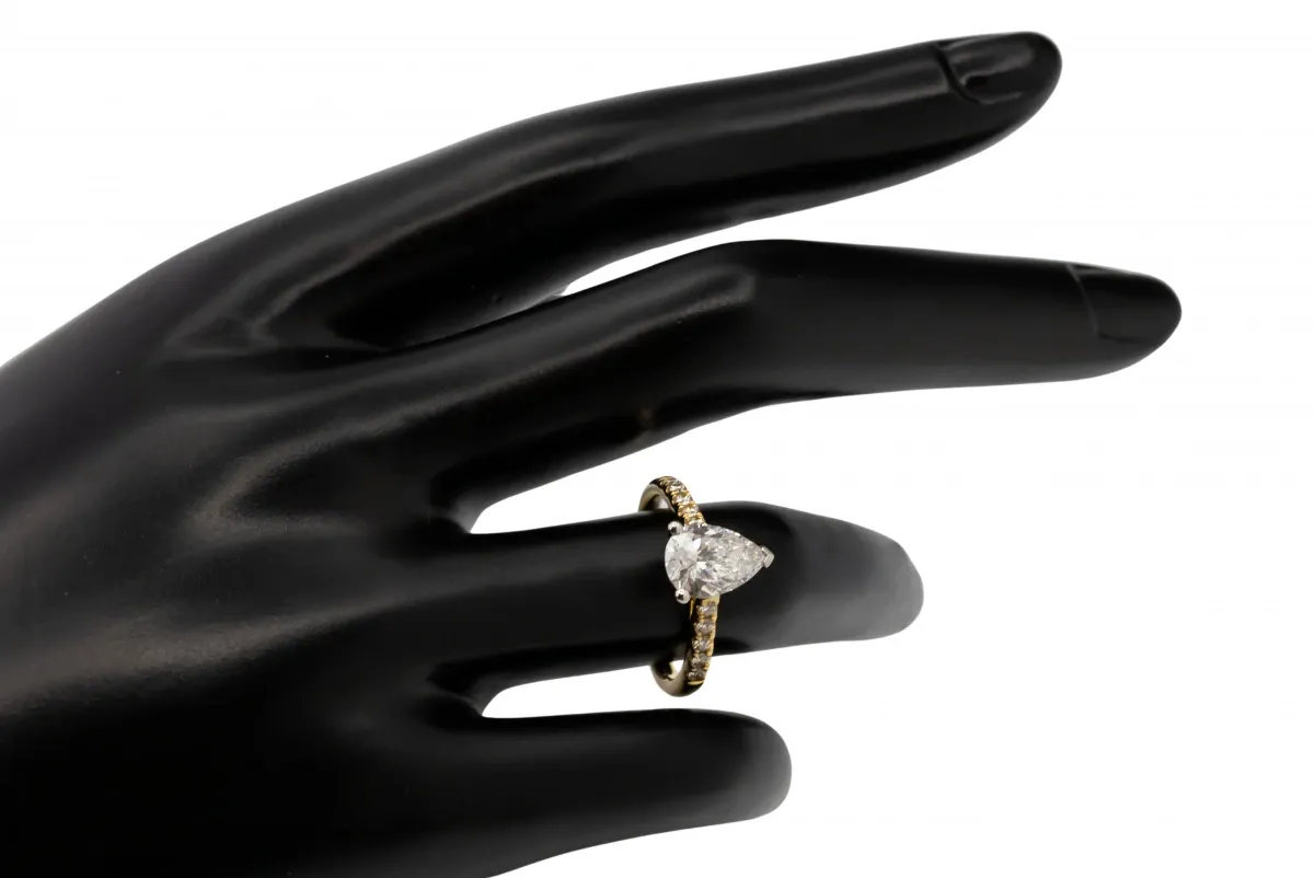 18ct Yellow Gold Platinum Gallery Pear Lab Diamond Engagement Ring 1.58ct IGI Certified