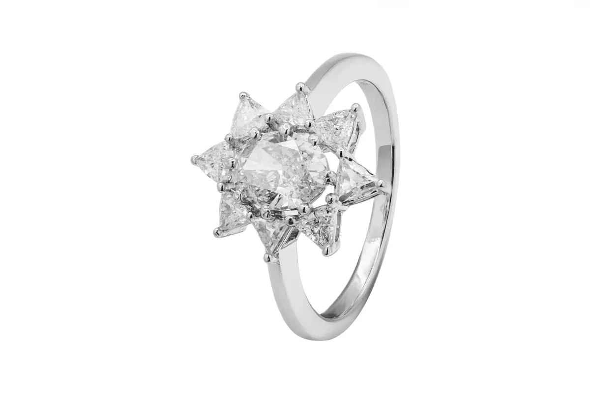The ring is size O and weighs 3.7g, with diamonds graded G for colour and Si2 for clarity. A sophisticated piece that blends vintage elegance with modern brilliance.