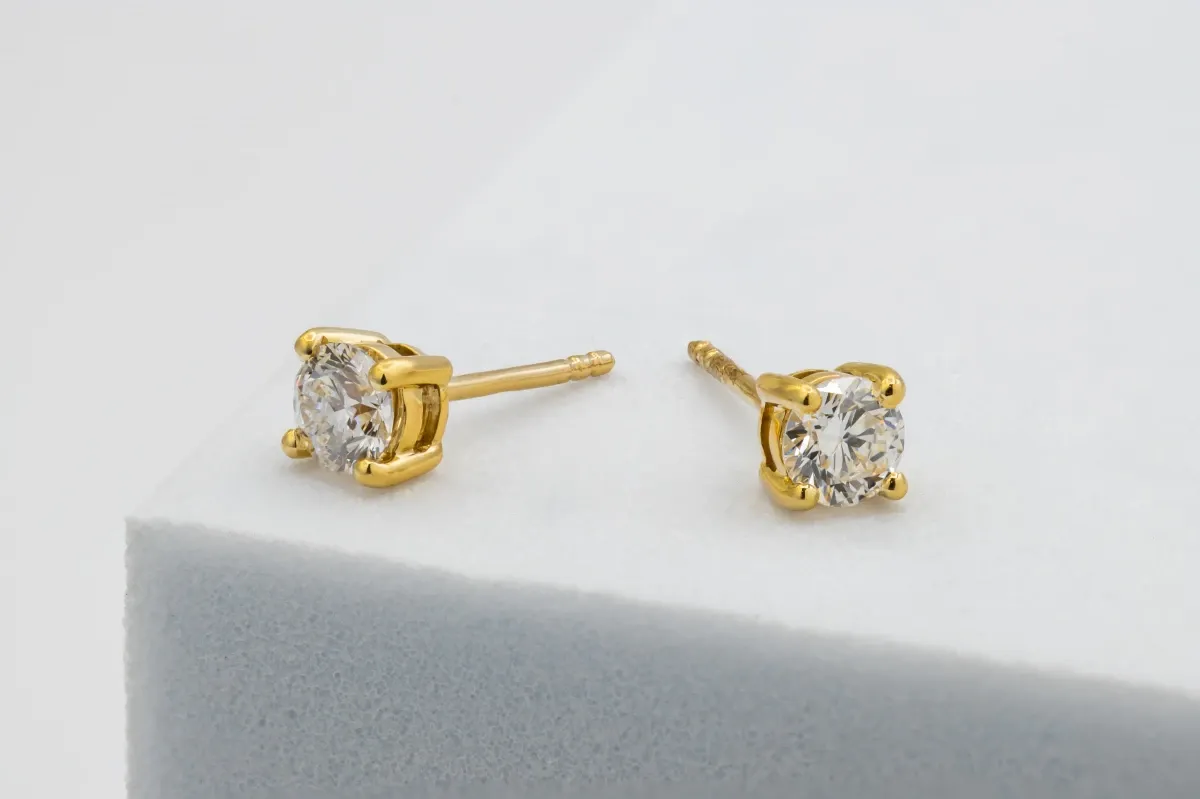 Round Brilliant Diamond Stud Earrings in 18ct Yellow Gold 0.70ct