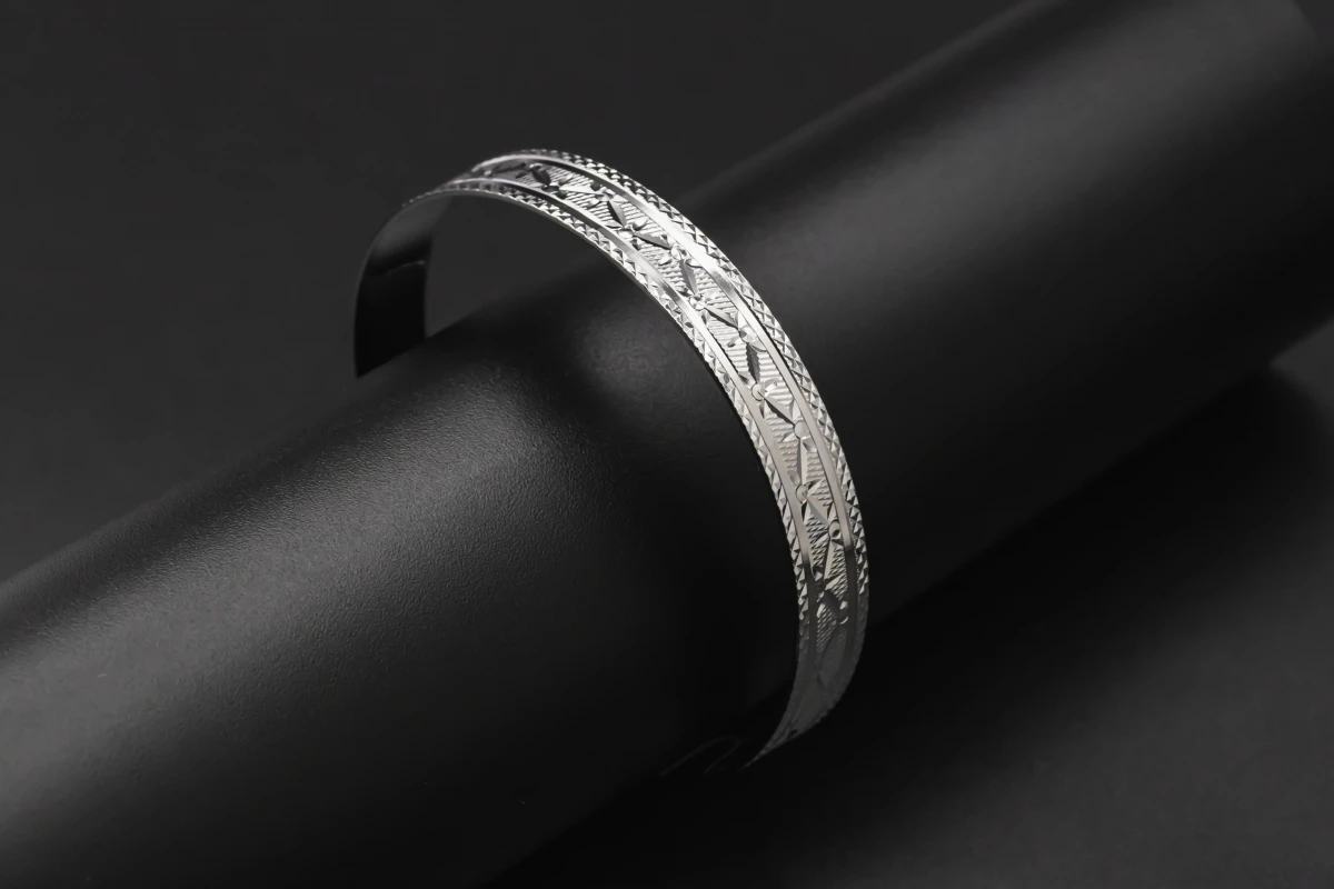 9ct White Gold Patterned Bangle 19g