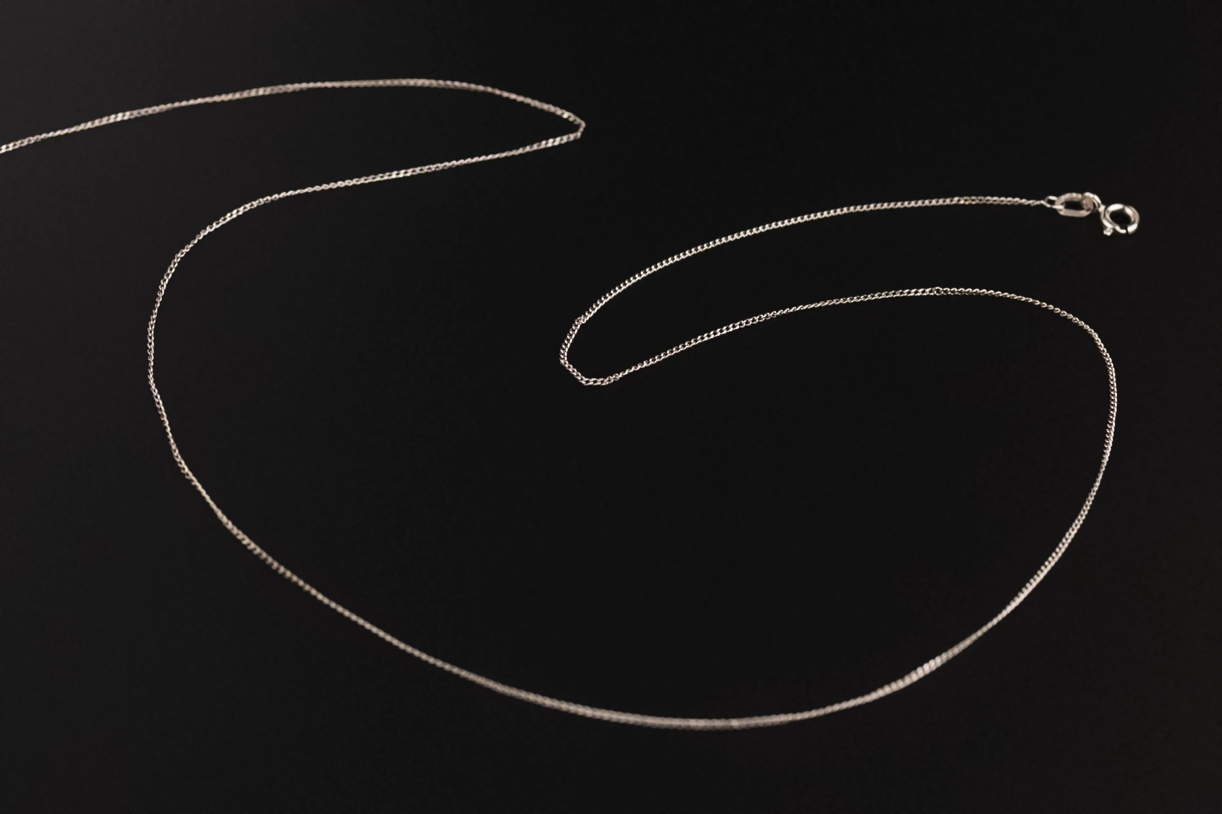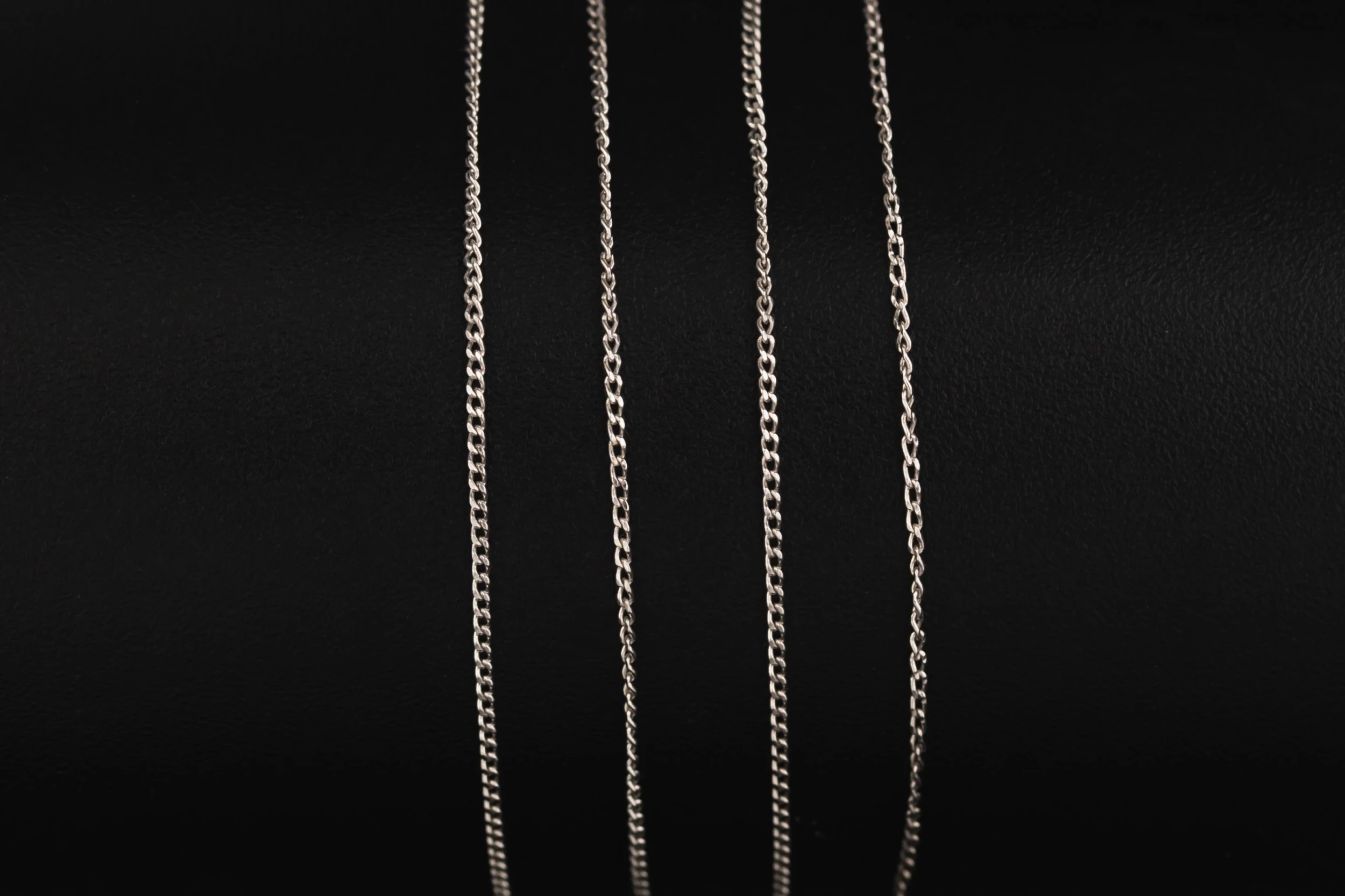 This sleek 9ct white gold Cuban chain features a fine 0.84mm link design, offering a clean and understated look.