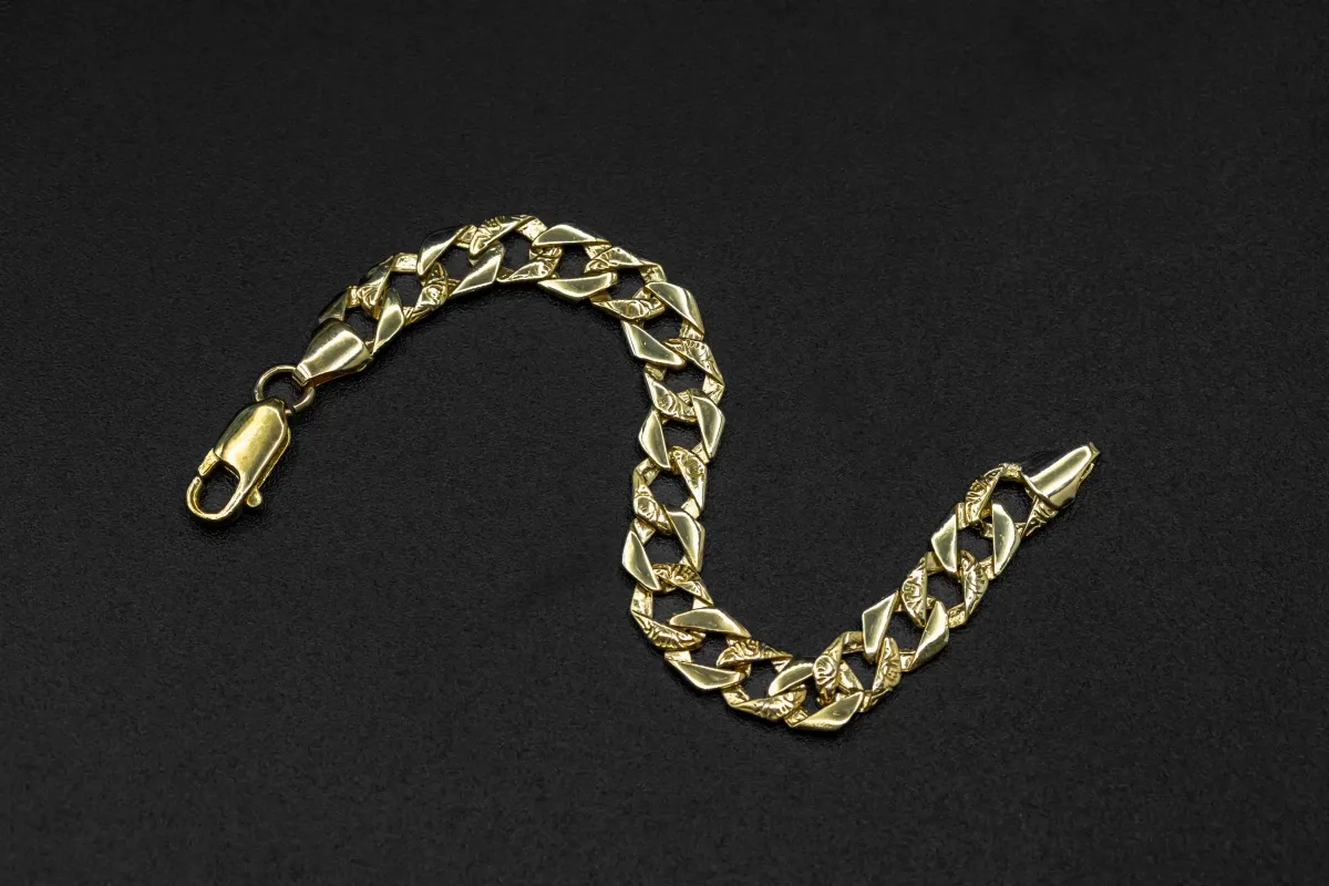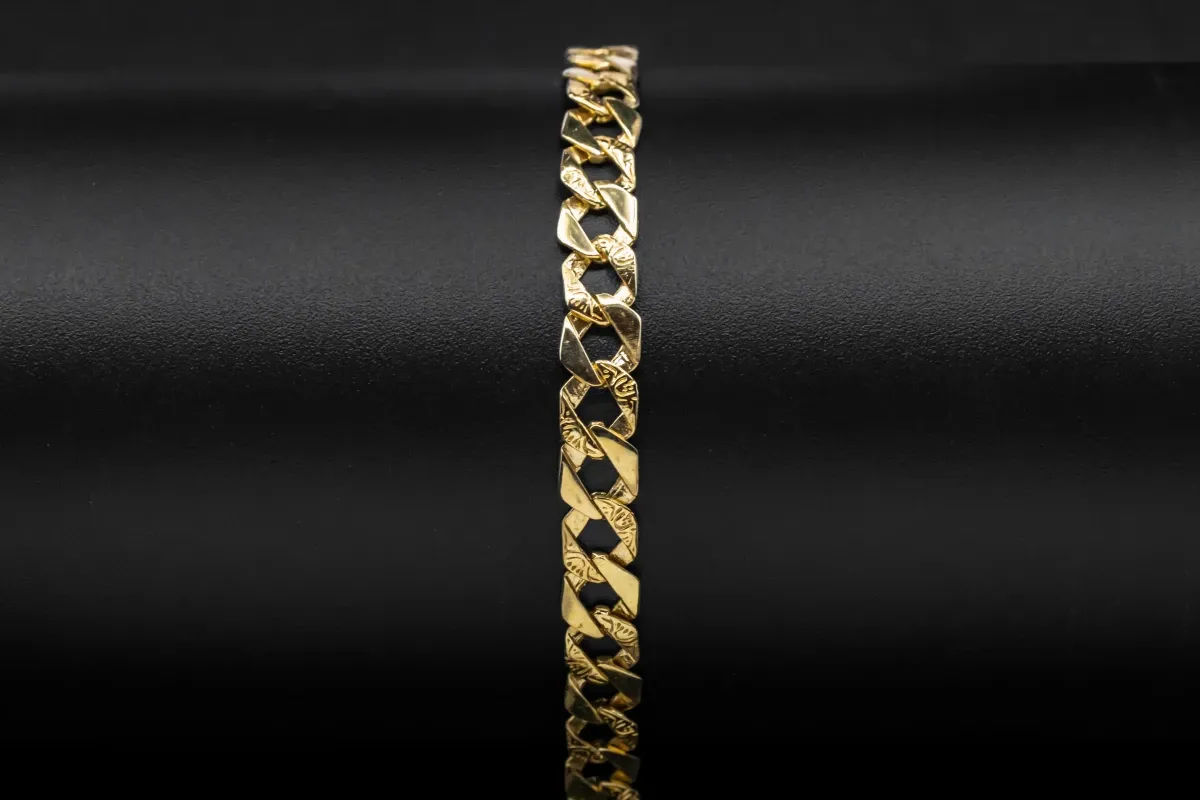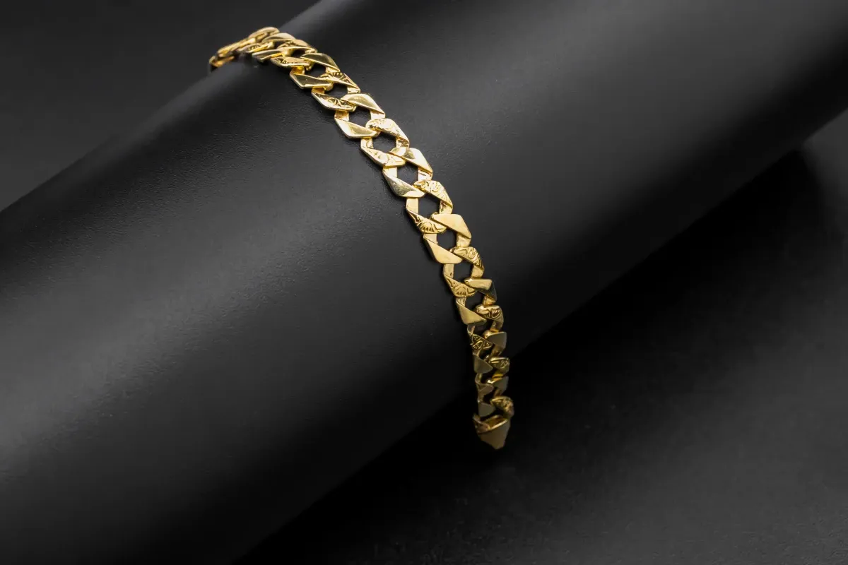 What sets this exquisite bracelet apart is its unique and captivating design. Each link features a mesmerizing swirl pattern adorning half of its surface, adding an element of artistic allure to the piece. The intertwining swirls symbolize the timeless bond of unity and love, making it a perfect accessory for any occasion.