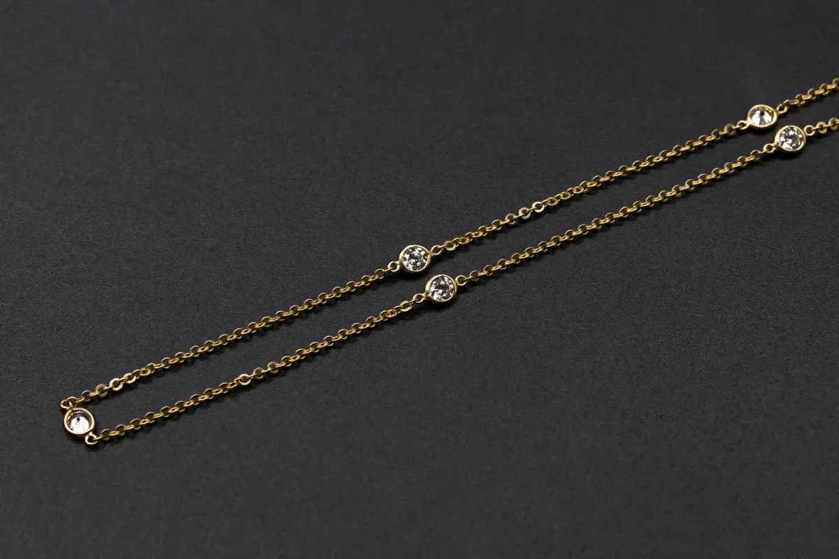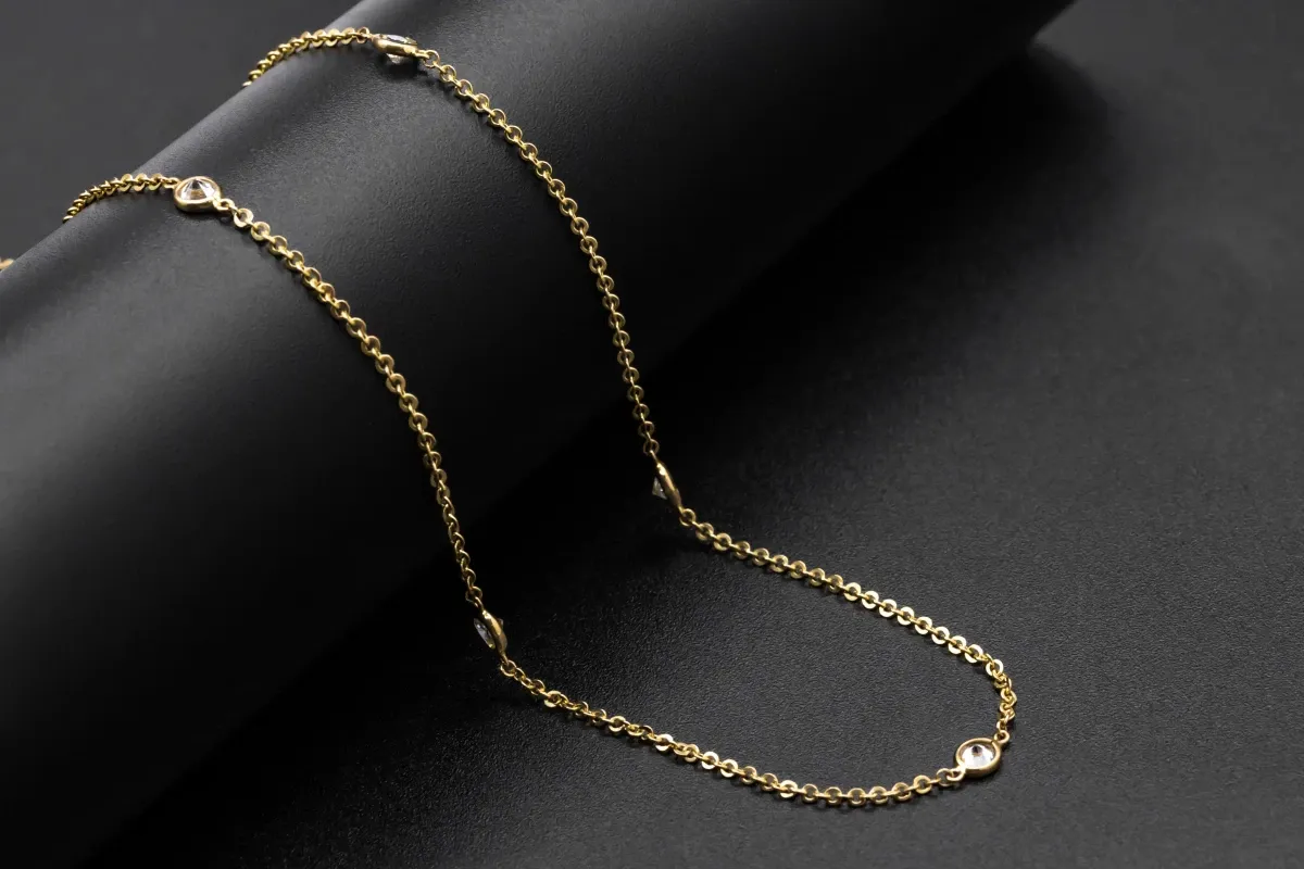 This exquisite chain weighs just 3.9g, ensuring a lightweight and comfortable wear throughout the day. Adorned with shimmering cubic zirconia stones.