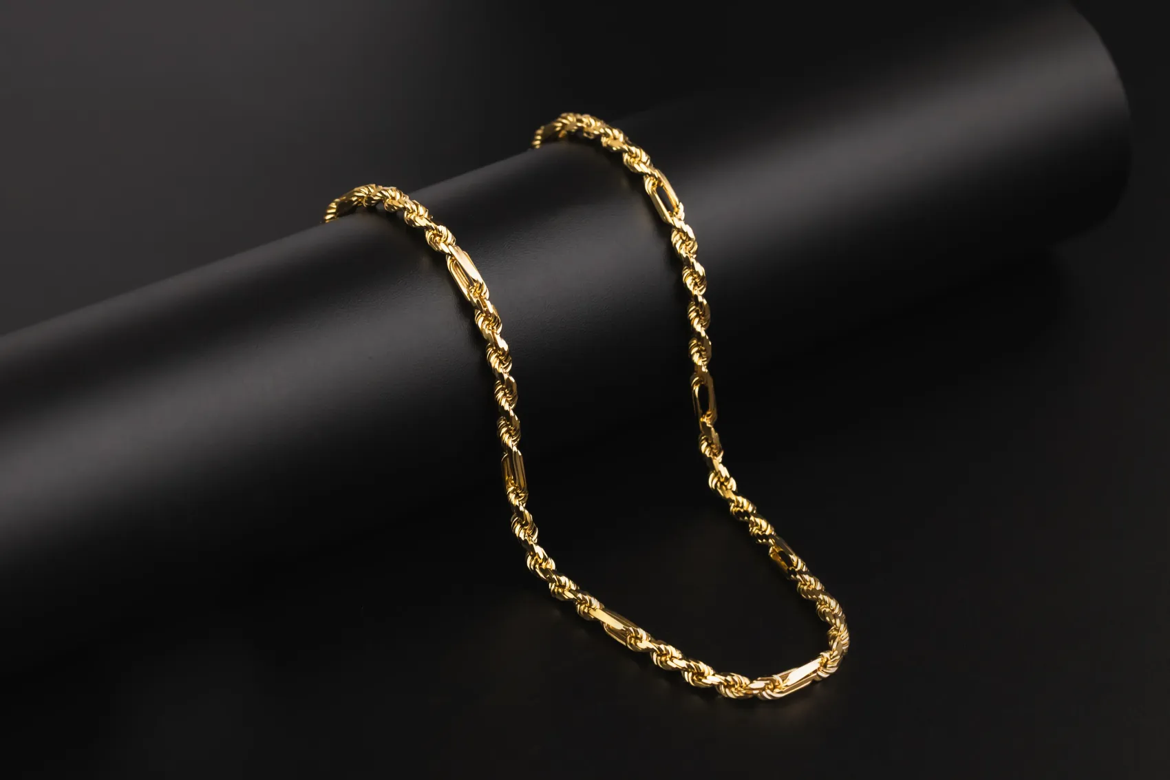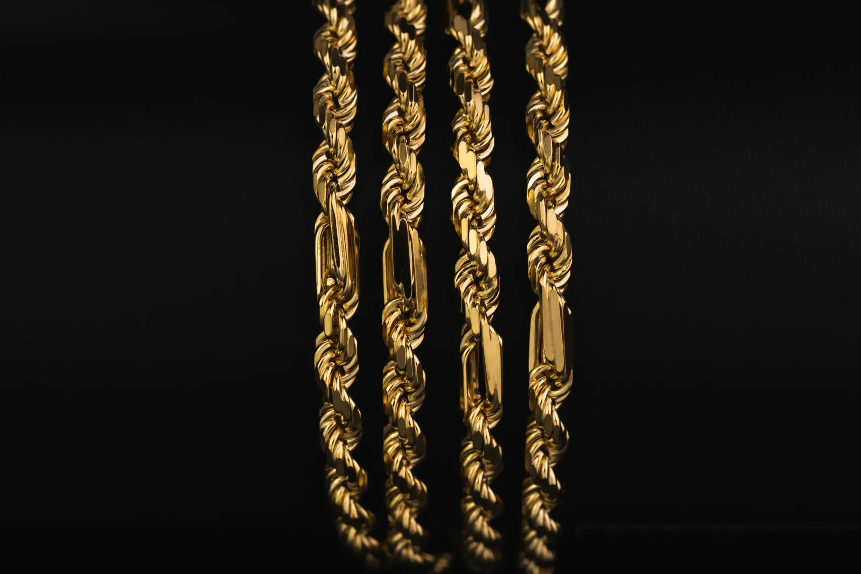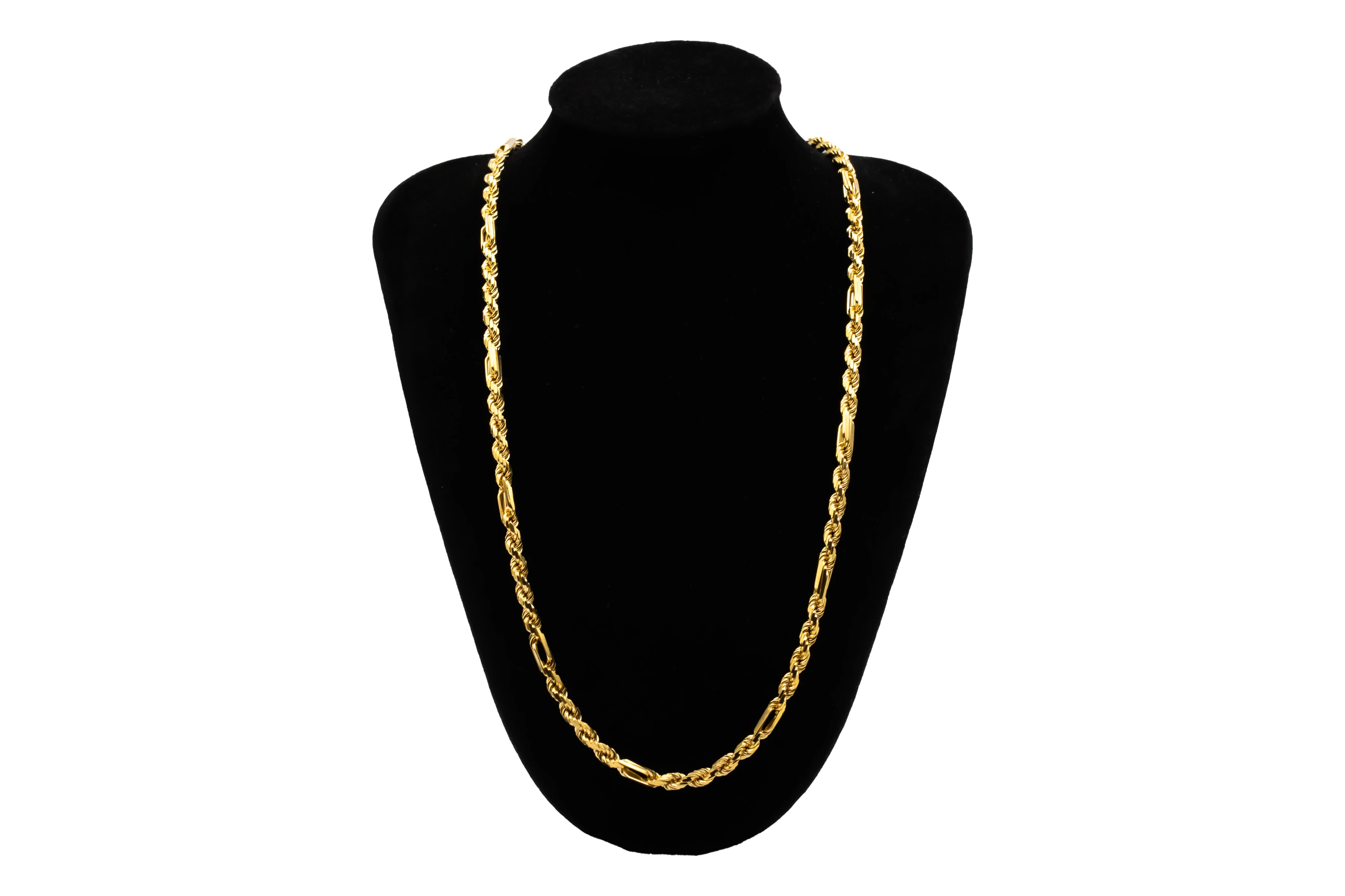 This impressive 9ct yellow gold diamond-cut rope chain measures a substantial 32 inches in length and weighs 44.95g, making it a bold and luxurious statement piece. The diamond-cut detailing enhances its brilliance, creating a striking sparkle as the light catches each twist of the rope design.