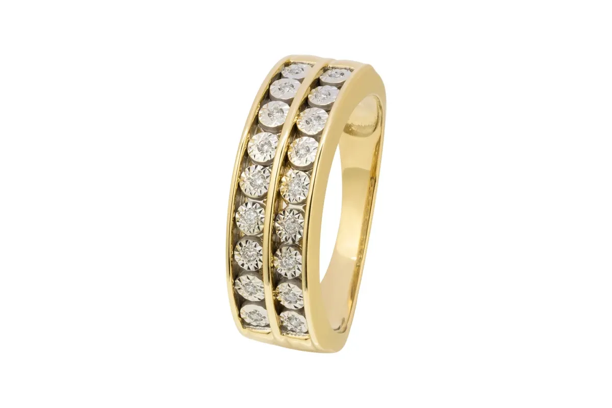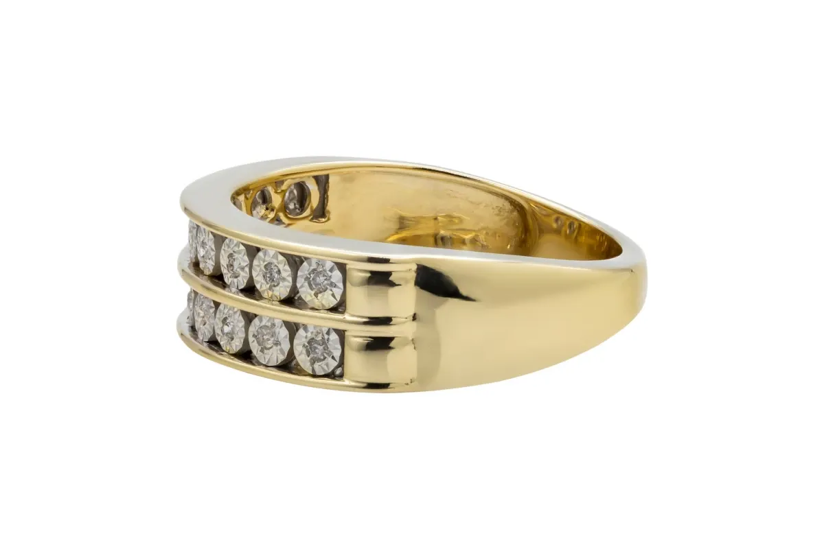 9ct Yellow Gold Double Row Diamond Wedding Band 0.07ct