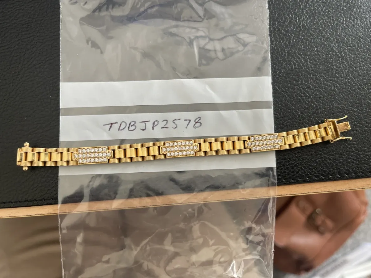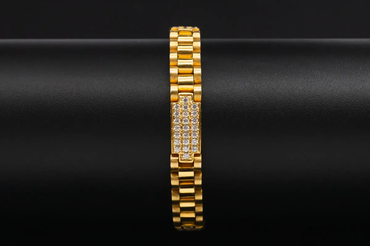 This charming 9ct gold Presidential baby bracelet features dazzling cubic zirconia stones and weighs 22.5 grams.