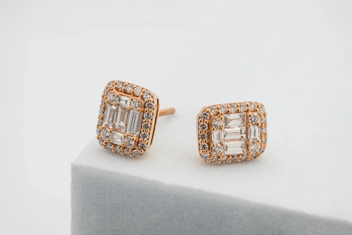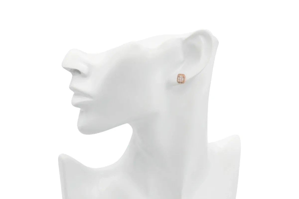 9ct Rose Gold Baguette & Round Diamond Stud Earrings 0.71ct