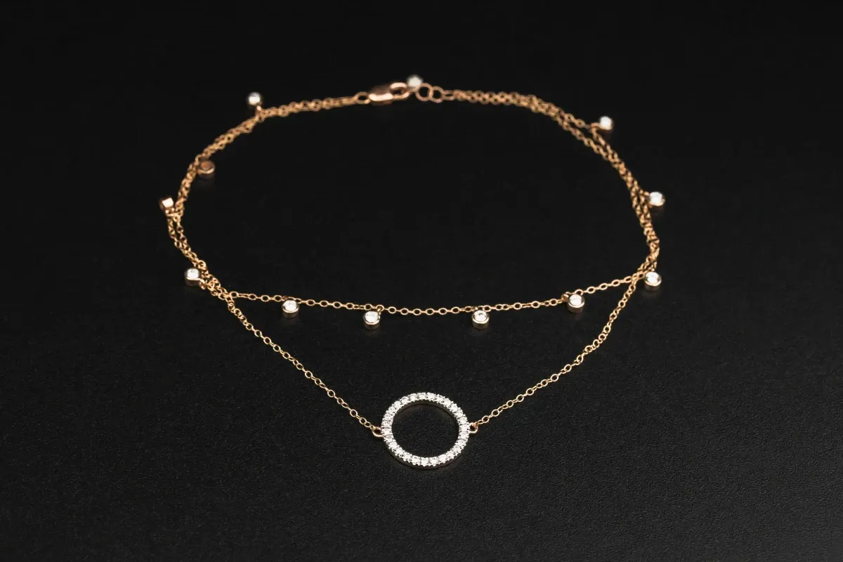 A feminine and elegant piece, this ladies’ anklet is crafted from warm 9ct rose gold with a beautifully hammered trace chain.