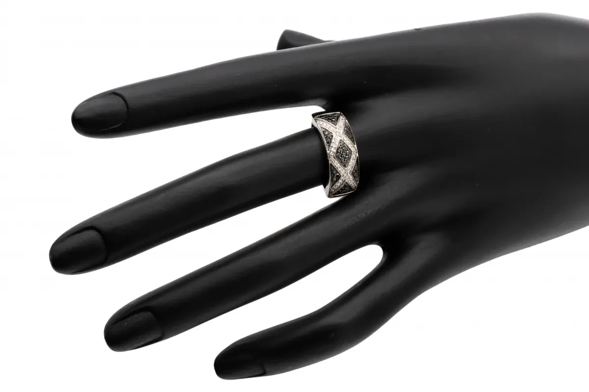 Exquisite 9ct White Gold Diamond Men's Ring. A captivating display of 0.41ct black and white round brilliant diamonds creates a mesmerizing visual effect.