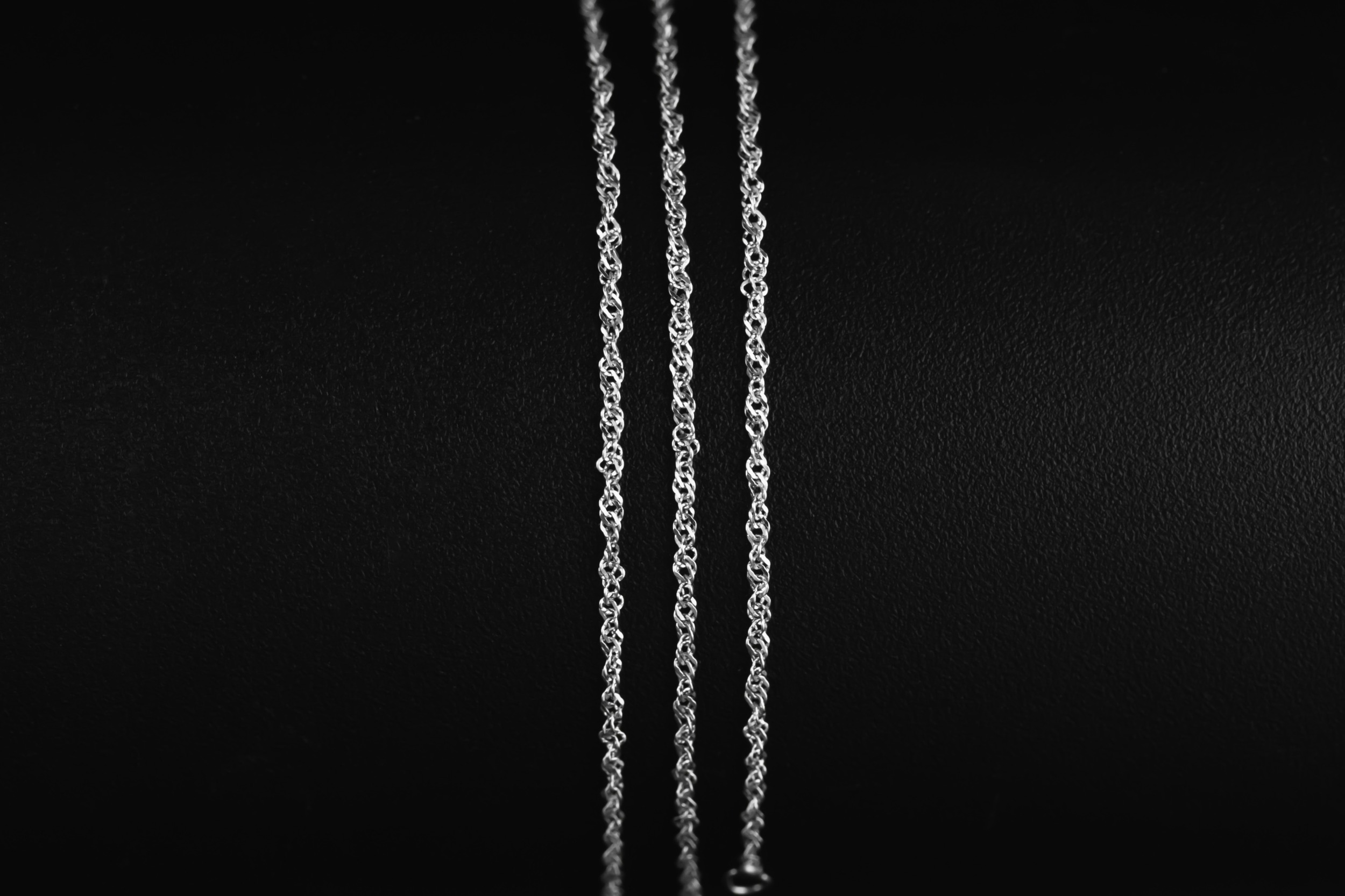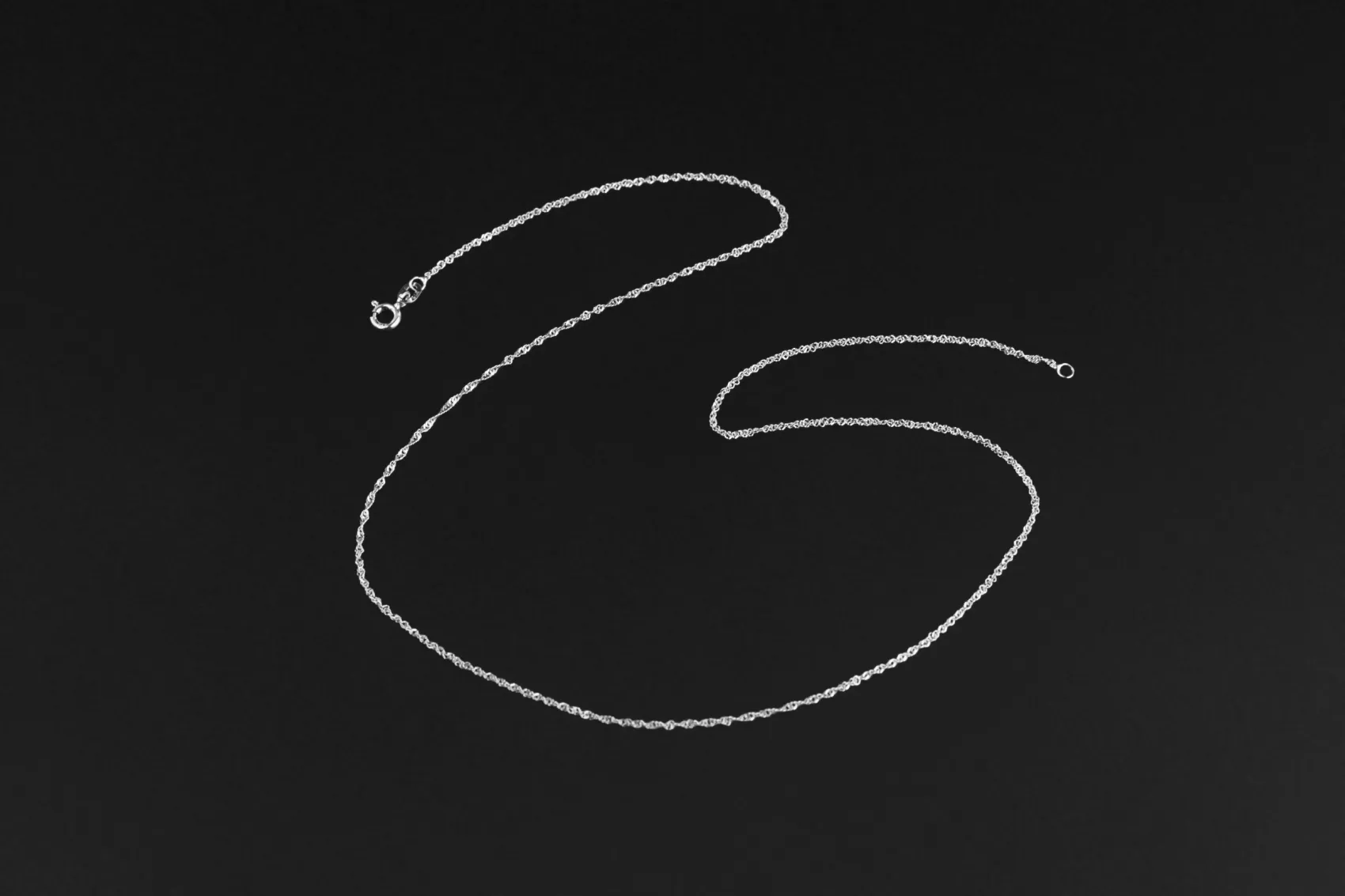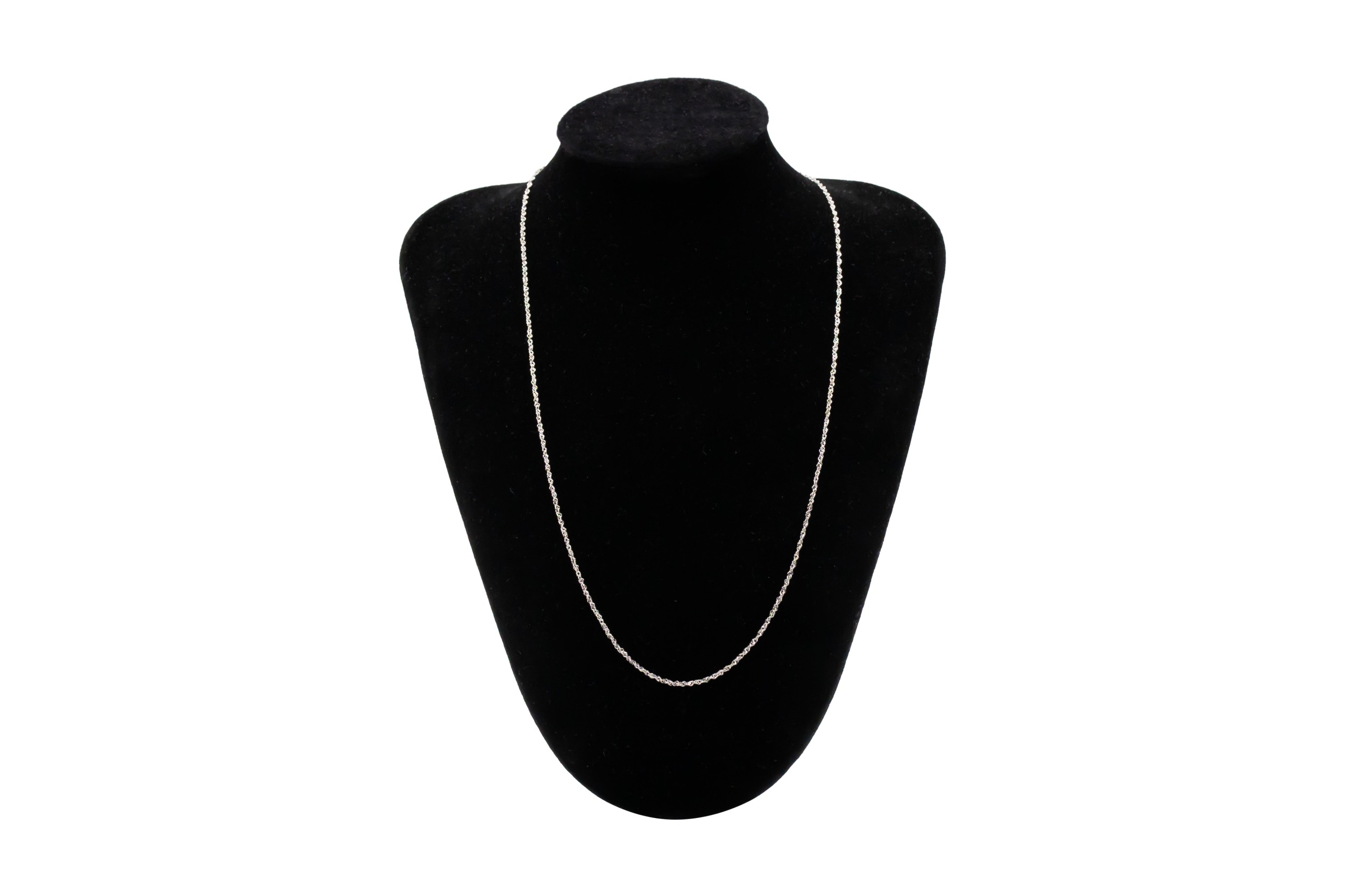 This refined 9ct white gold chain features a sleek polished finish, offering a clean and contemporary look suitable for both pendants and standalone wear.