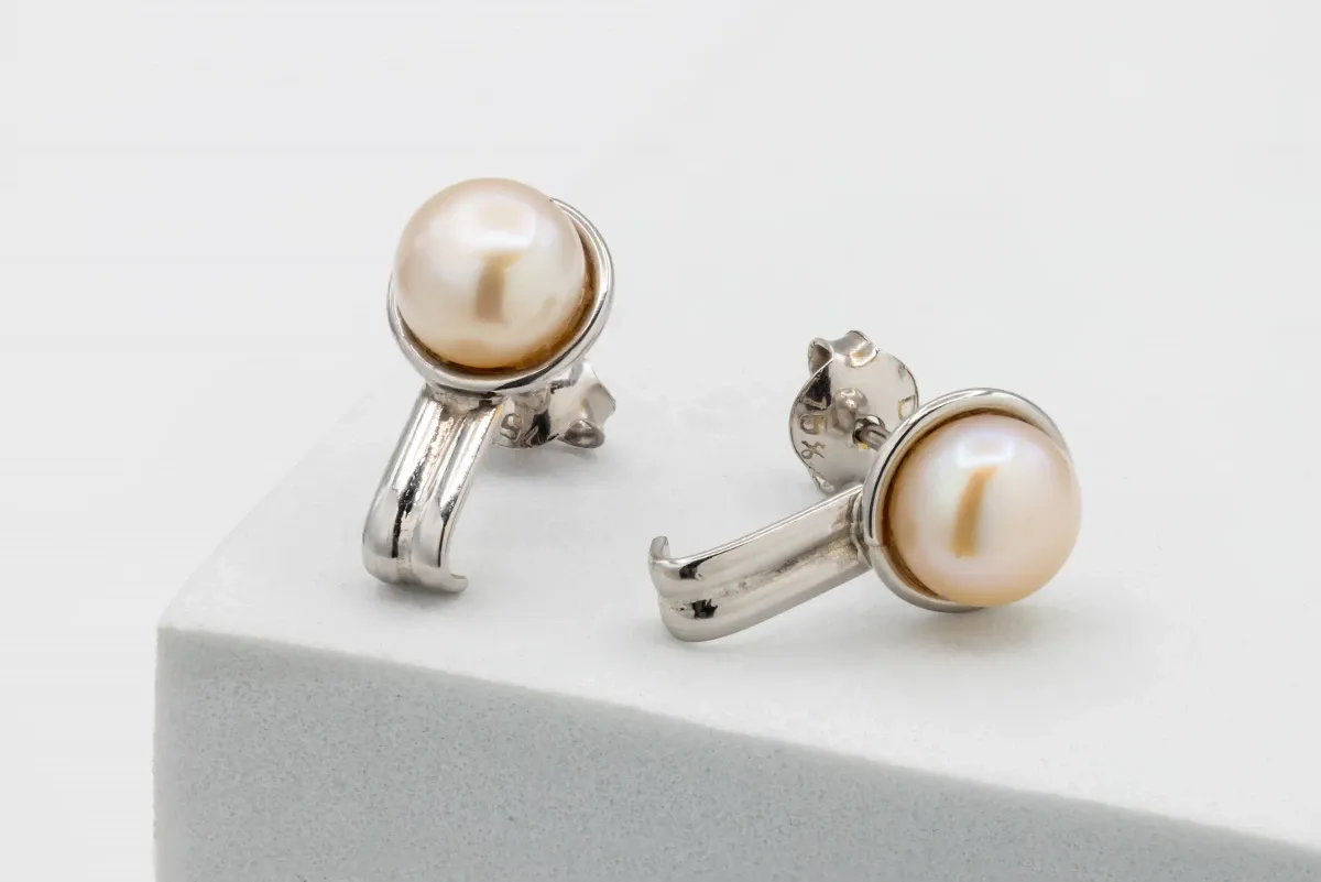 9ct White Gold Costume Pearl Stud Earrings 2.8g