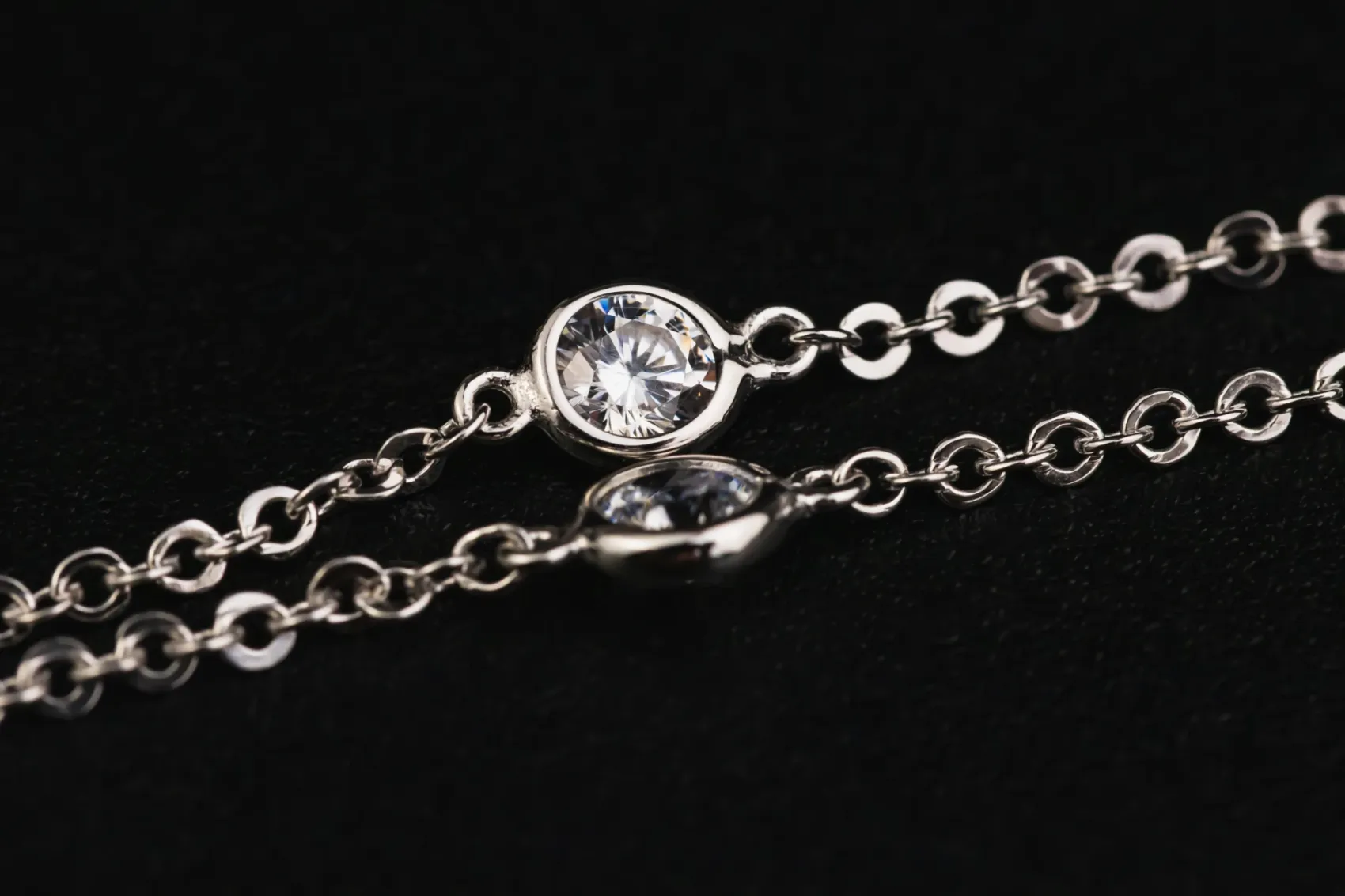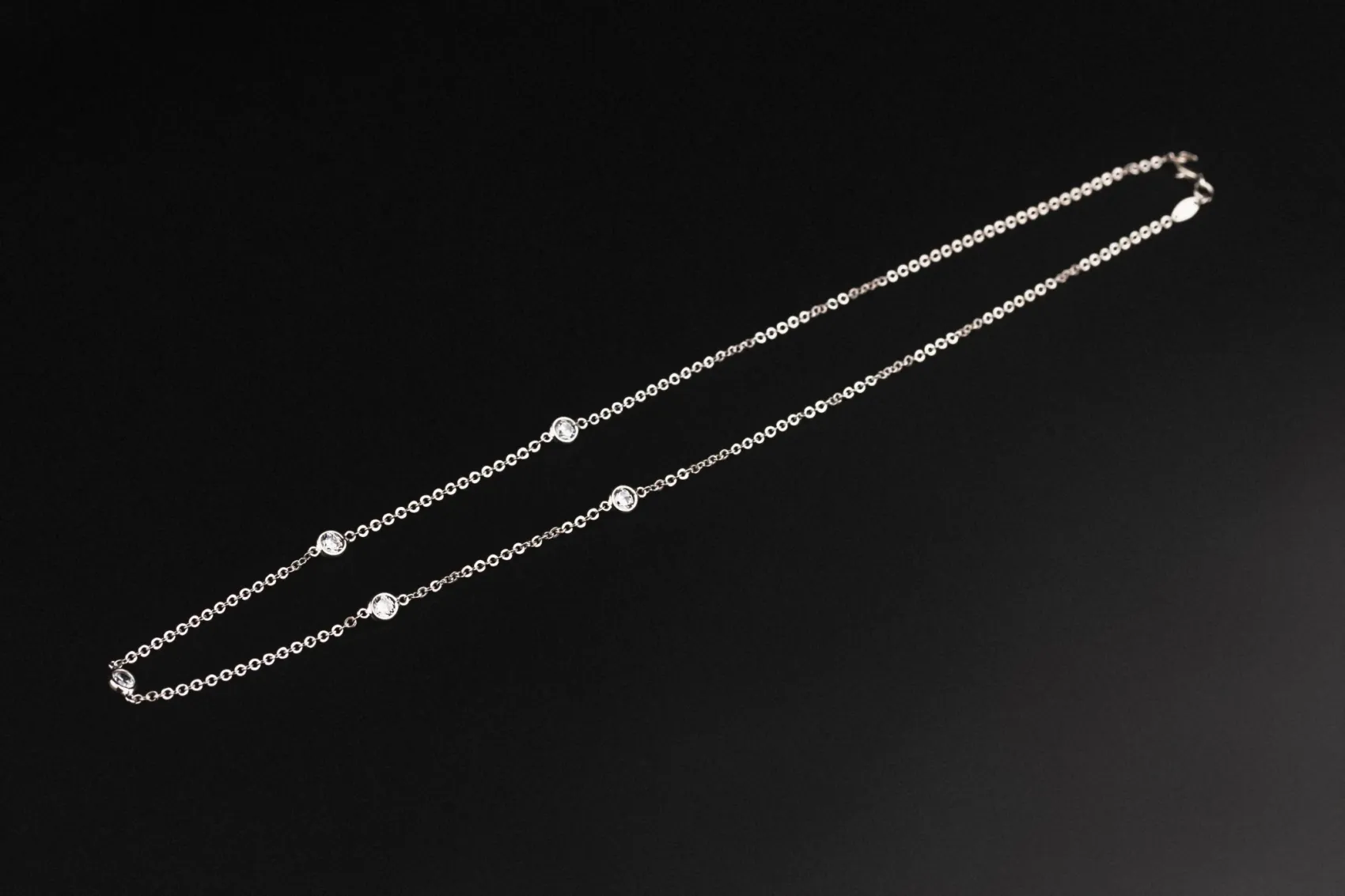 This elegant 9ct white gold necklace features a delicate 1mm chain set with sparkling cubic zirconia stones, offering the brilliance of diamonds with a modern, refined look.