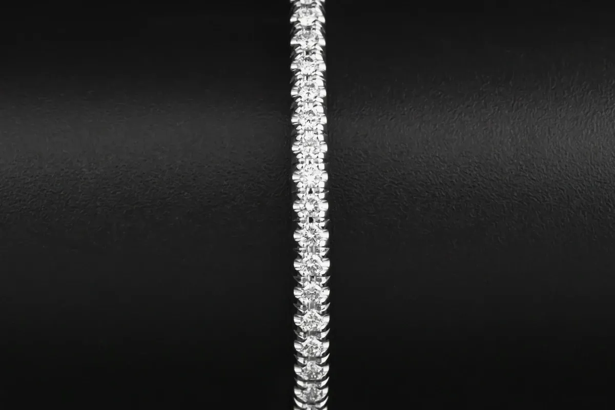 Crafted in 9ct white gold, this elegant bangle features 1.25ct of G colour, SI clarity diamonds set along its 4mm width.