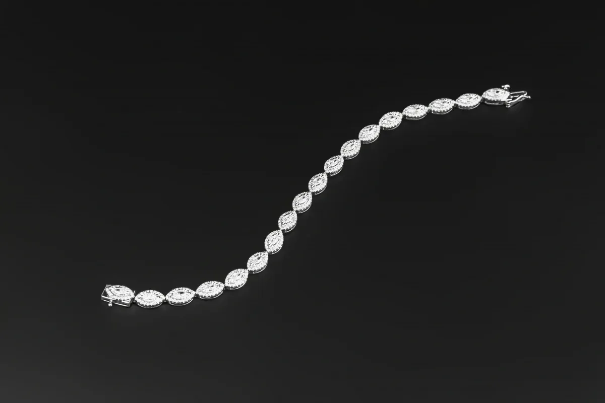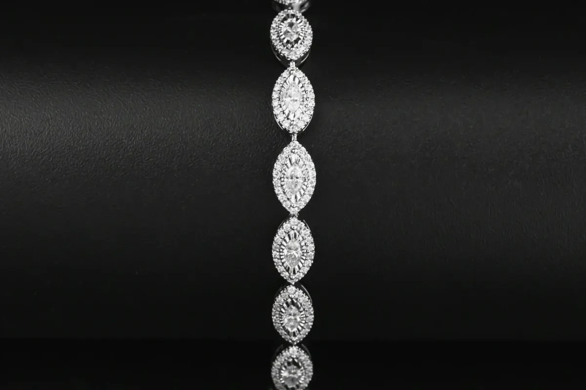 Add timeless sophistication to your jewellery collection with this stunning diamond marquise bracelet in 9ct white gold.