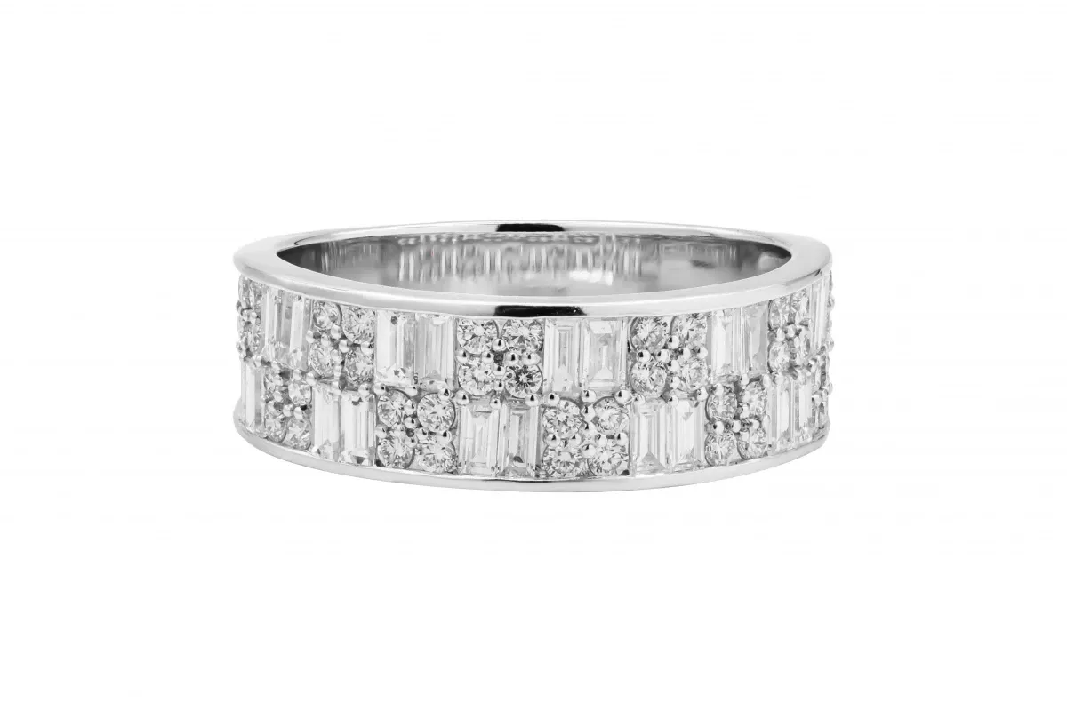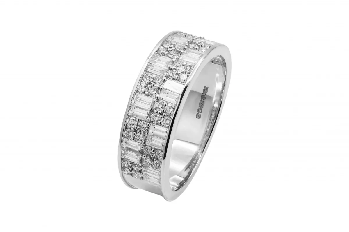 This sophisticated 9ct White Gold Men's Diamond Ring features a bold design with 1.21ct of diamonds, graded F colour and VS1 clarity, offering exceptional brilliance.