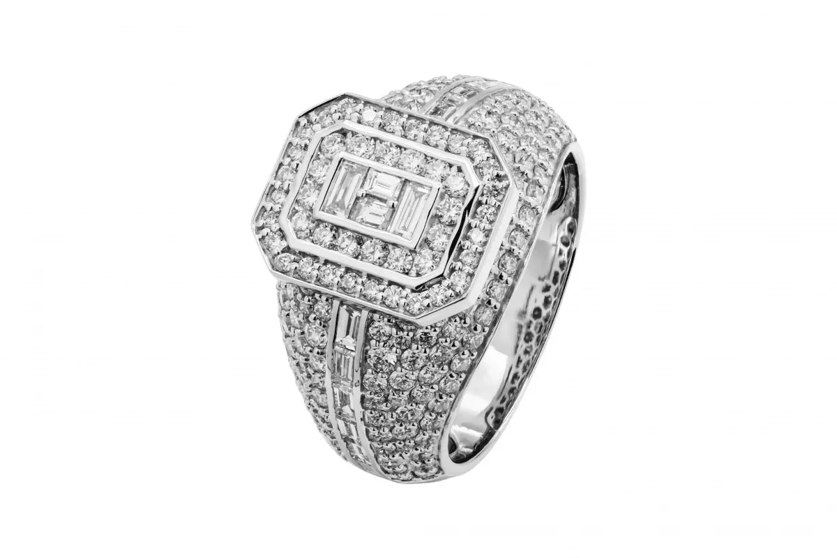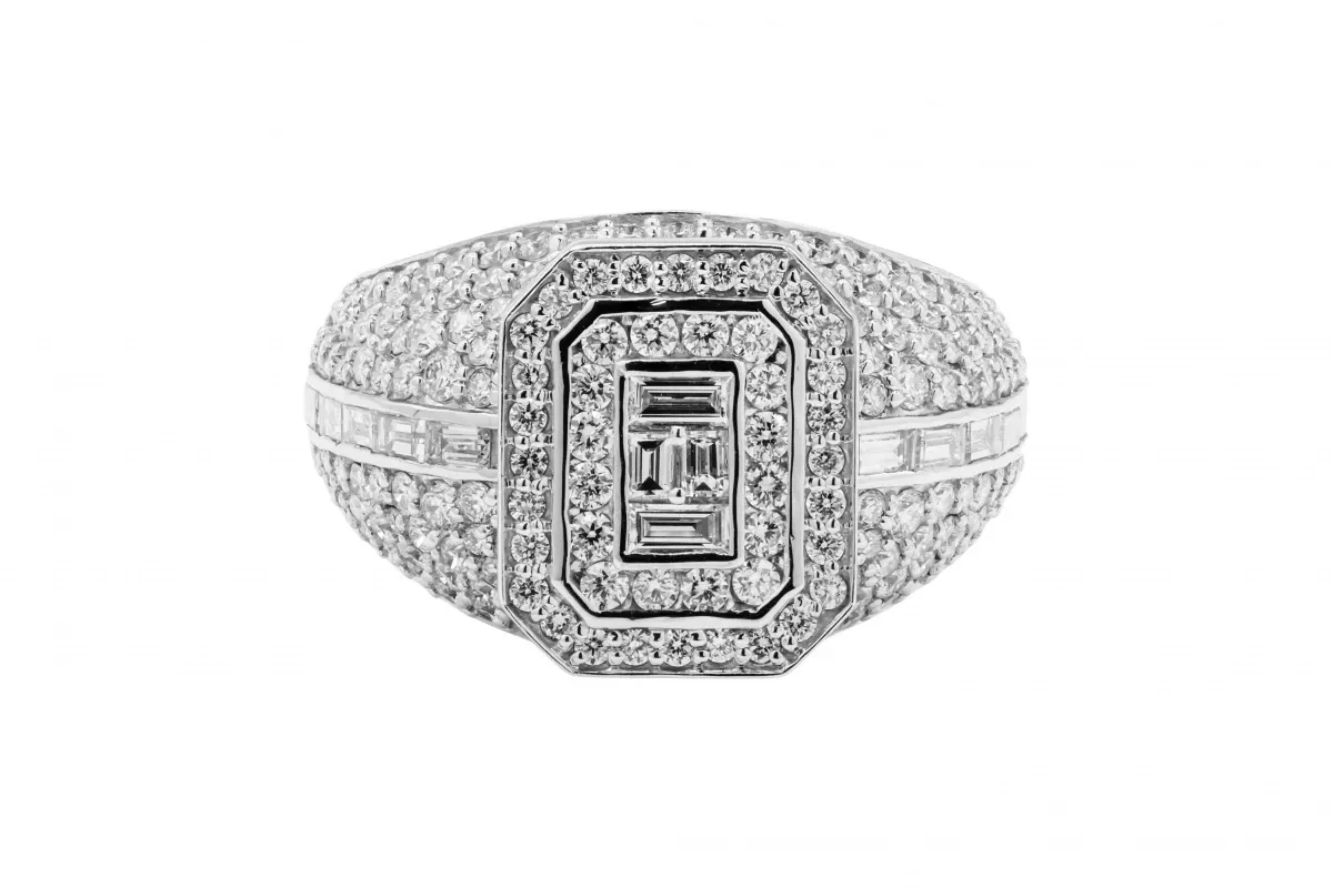 This 9ct White Gold Diamond Ring features an impressive 2.86ct of F color, VS clarity diamonds, weighing 8.8g.
