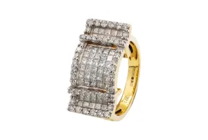 With its elegant design and substantial diamond presence, this ring is a stunning statement piece, perfect for special occasions or as a luxurious addition to your collection. Size P.