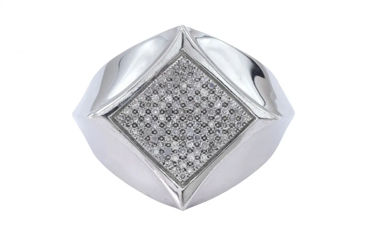 9ct White Gold Square Diamond Cluster Signet Ring