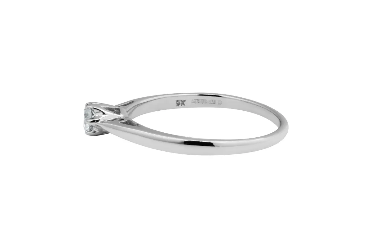 Crafted in elegant 9ct white gold, this timeless solitaire engagement ring features a 0.22ct natural diamond, graded I colour and SI clarity.