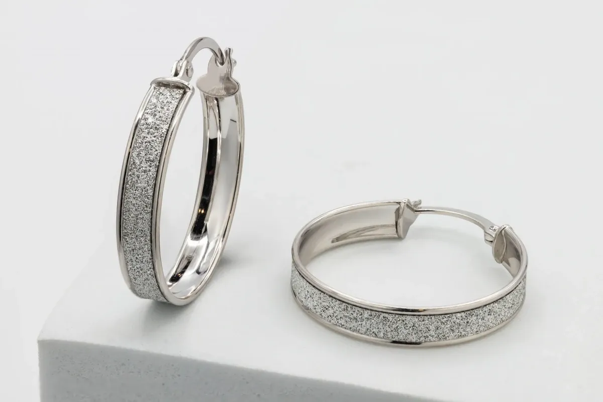 9ct White Gold Hoop Earrings with Frosted Texture 1.7g