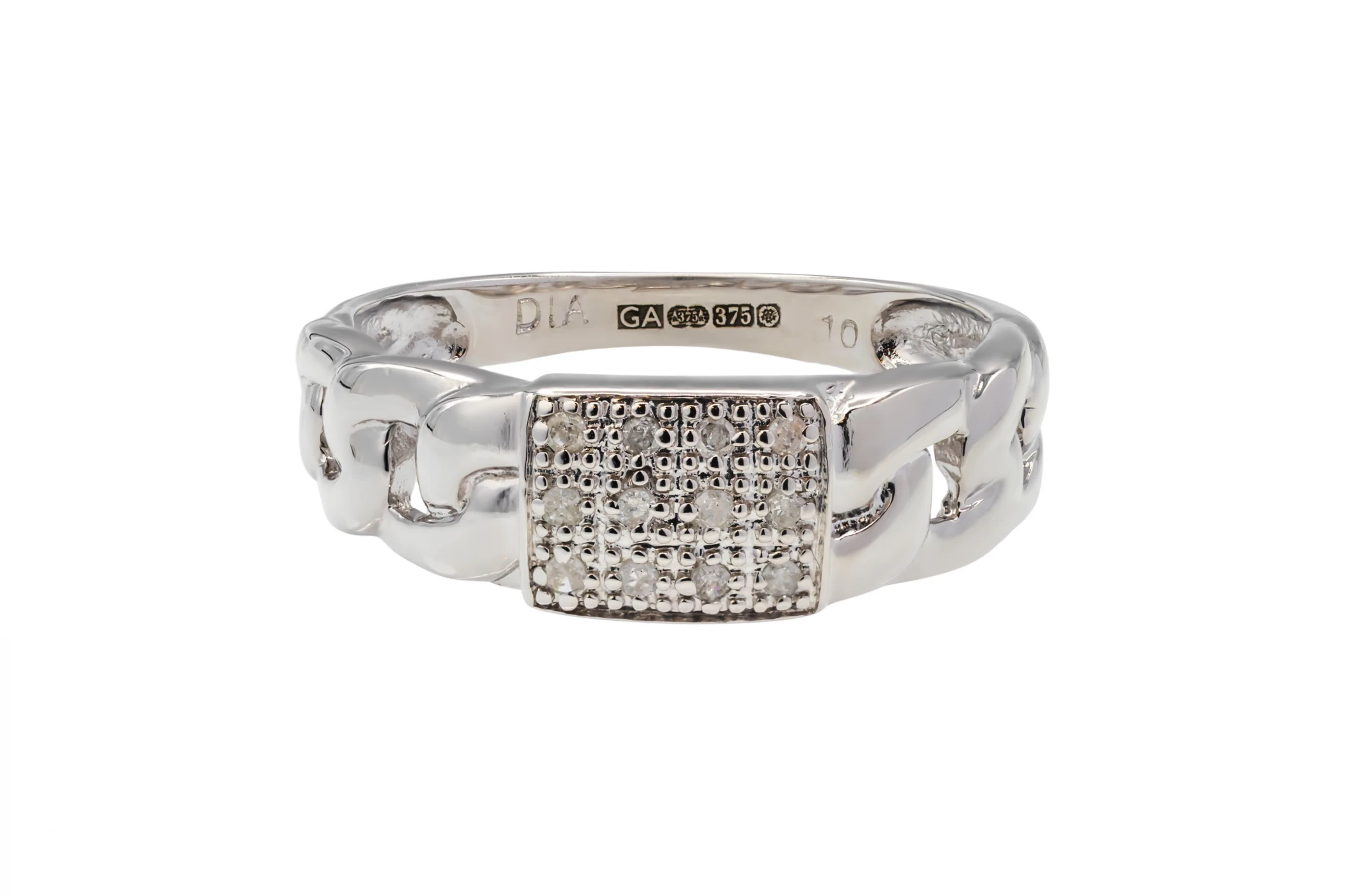 9ct White Gold Diamond ID Design Mens Ring 0.10ct 3.8g