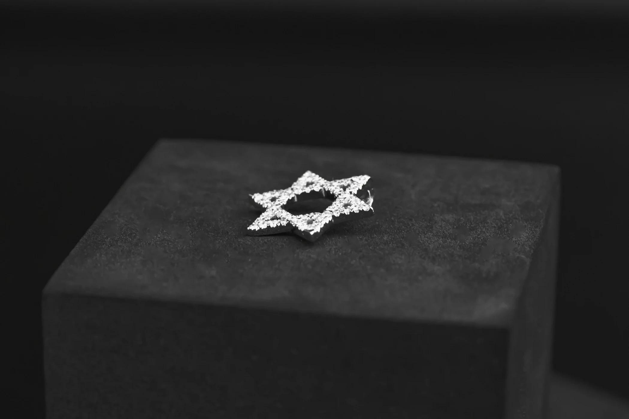Crafted in elegant 9ct white gold, this Star of David pendant features 0.14ct of brilliant-cut diamonds in G SI quality, adding a refined touch of sparkle to this meaningful symbol.