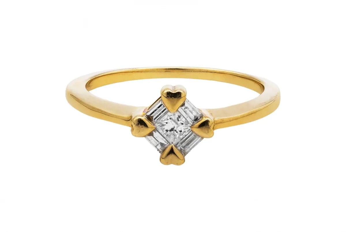 9ct Yellow Gold 5 Diamond Engagement Ring With Heart Claws