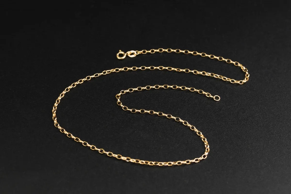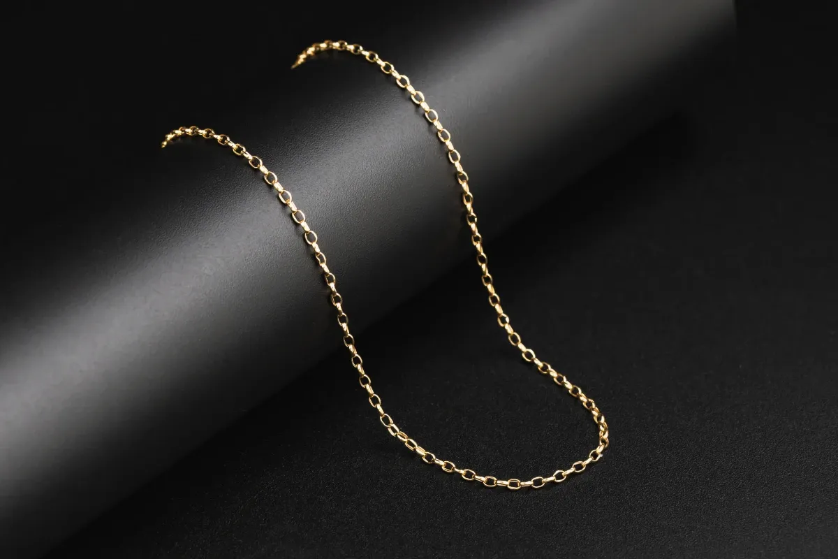 Measuring 18 inches in length and 2.15mm in width, it’s lightweight at 1.5g, perfect for everyday wear or pairing with a pendant. Its timeless design makes it a staple piece in any jewellery collection.