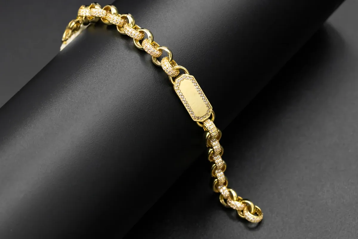 9ct Yellow Gold CZ ID Belcher Design Children's Bracelet 14.2g