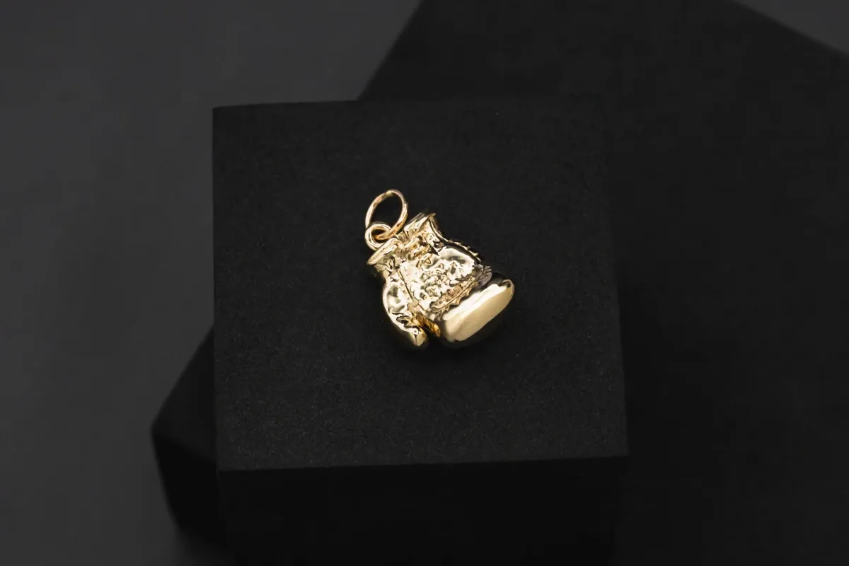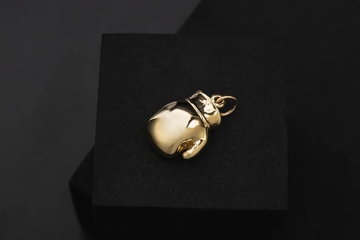 This 9ct yellow gold boxing glove pendant, weighing 13.6g, is a bold and stylish piece—perfect for sports enthusiasts or as a statement accessory.