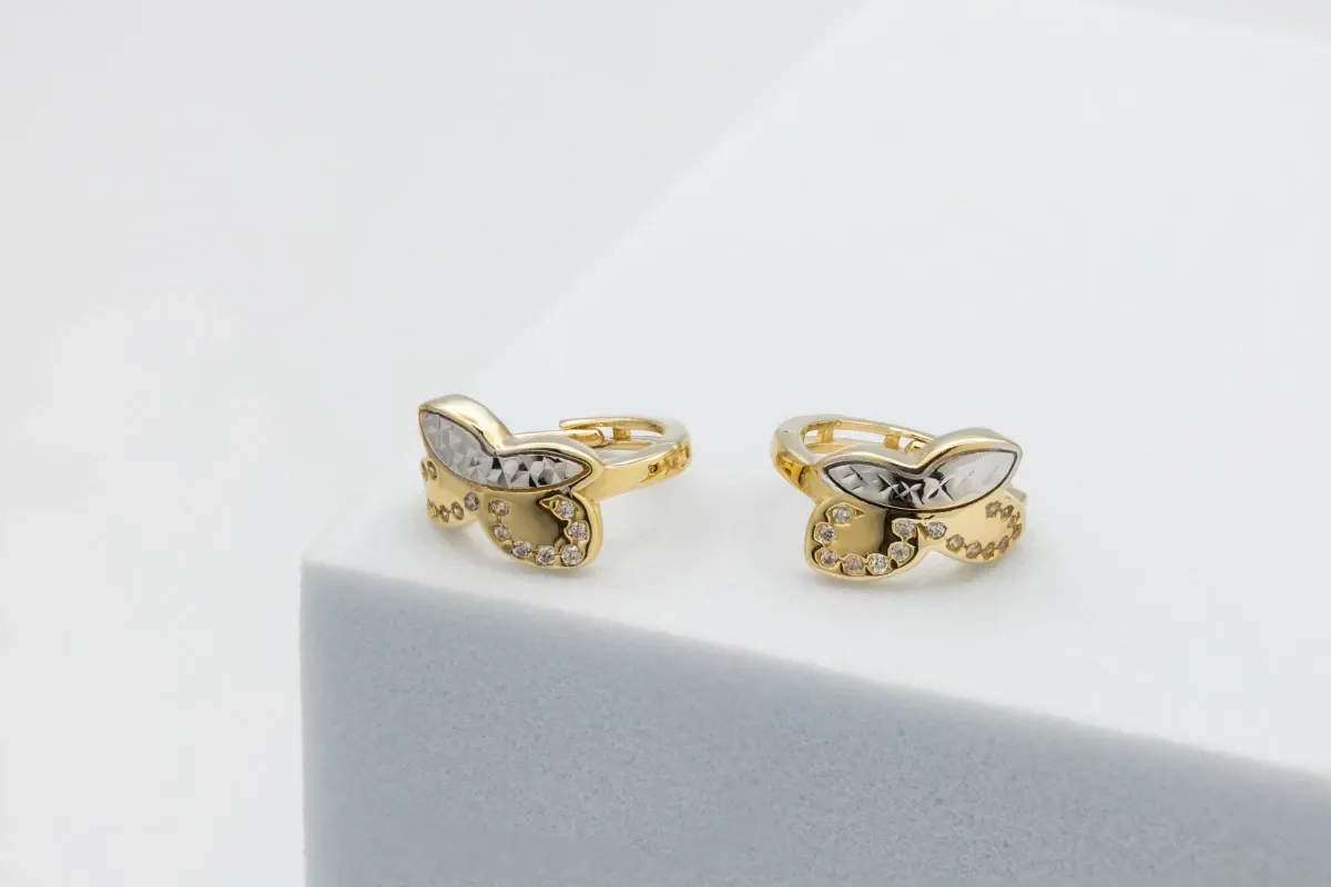 9ct Yellow Gold Butterfly Cubic Zirconia Huggie Earrings