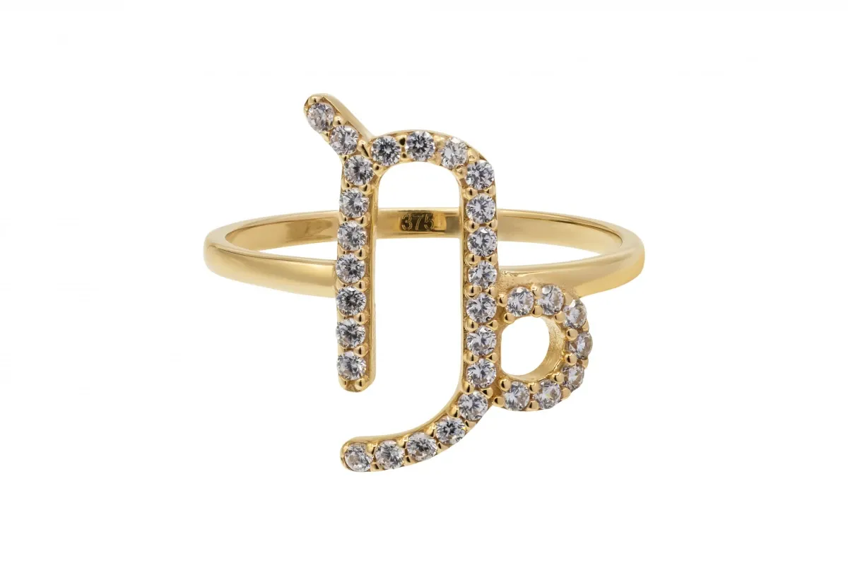 Celebrate your star sign in style with this 9ct yellow gold Capricorn zodiac ring, adorned with sparkling cubic zirconia stones for a touch of celestial glamour.