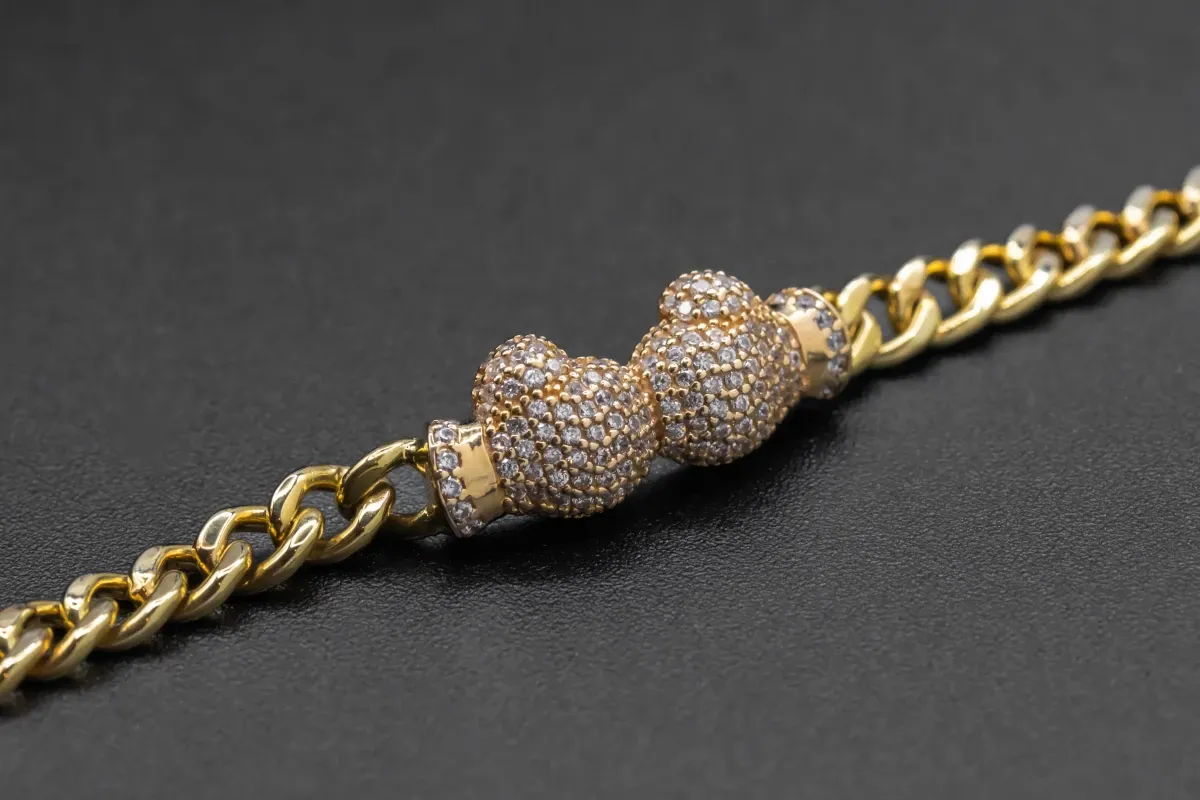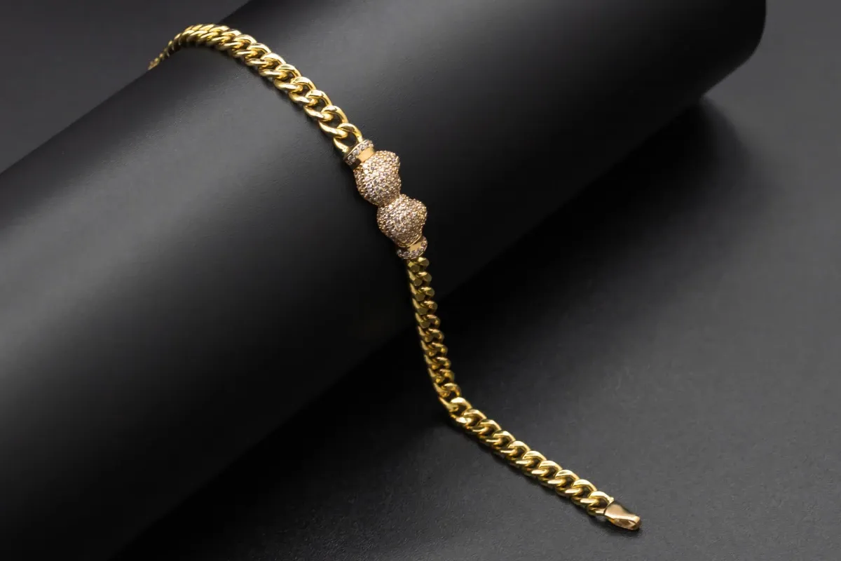 The bracelet measures 7.5 inches in length and 5mm in width, and it has a substantial weight of 12.9 grams. This bracelet is a symbol of adorable elegance and a playful spirit.