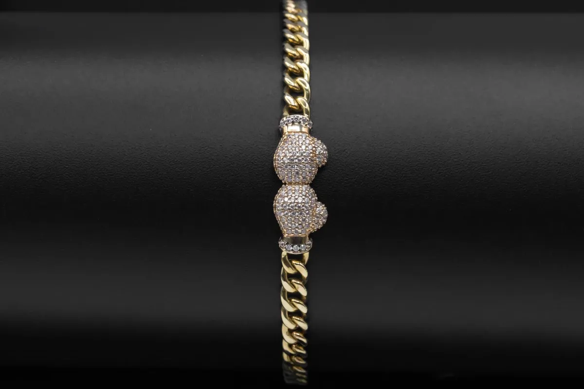 9ct Yellow Gold Cubic Zirconia Children's Bracelet Boxing Gloves 12.9g